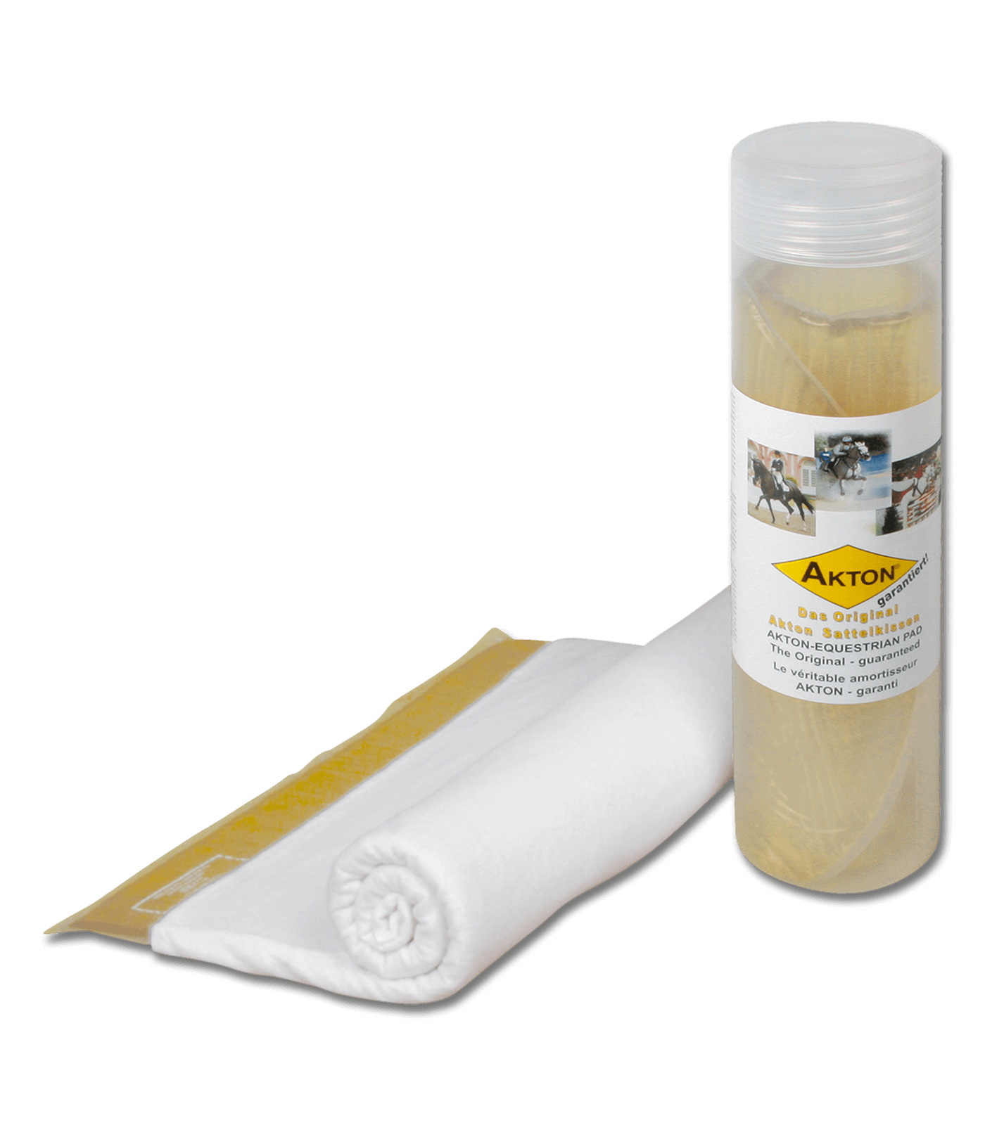 De Akton® allround zadelonderlegger is uitgevoerd met een witte, wasbare melton hoes van katoenmolton. Deze stof absorbeert zweet en beschermt het zadeldek effectief.