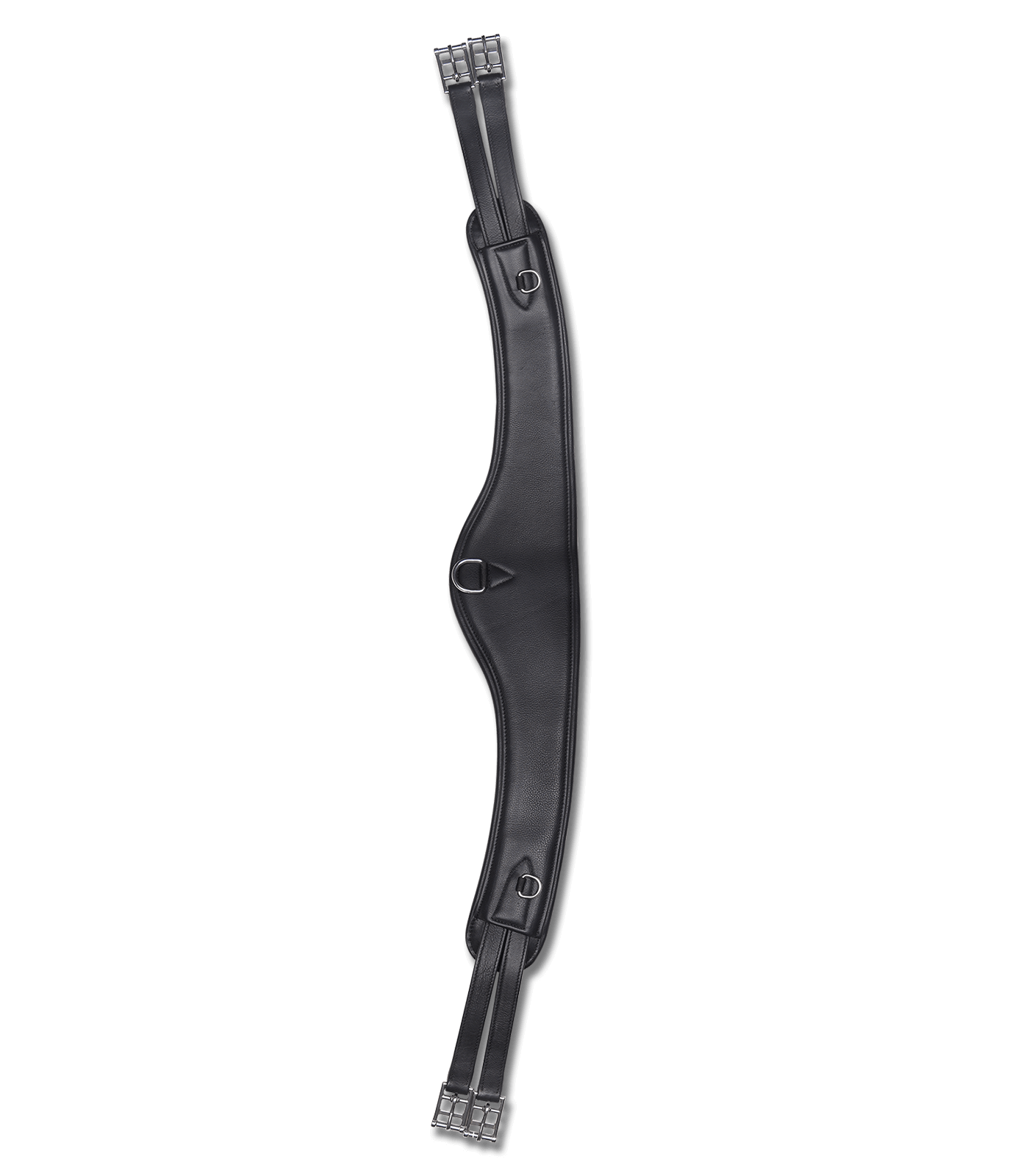 Anatomisch gevormde leren singel, ideaal voor vollere paarden en bij verschuivende zadels. Hoogwaardig leer met zachte voering. Voorzien van drie D-ringen voor hulpteugels. Roestvrijstalen gespen en ringen. Zonder elastiek.