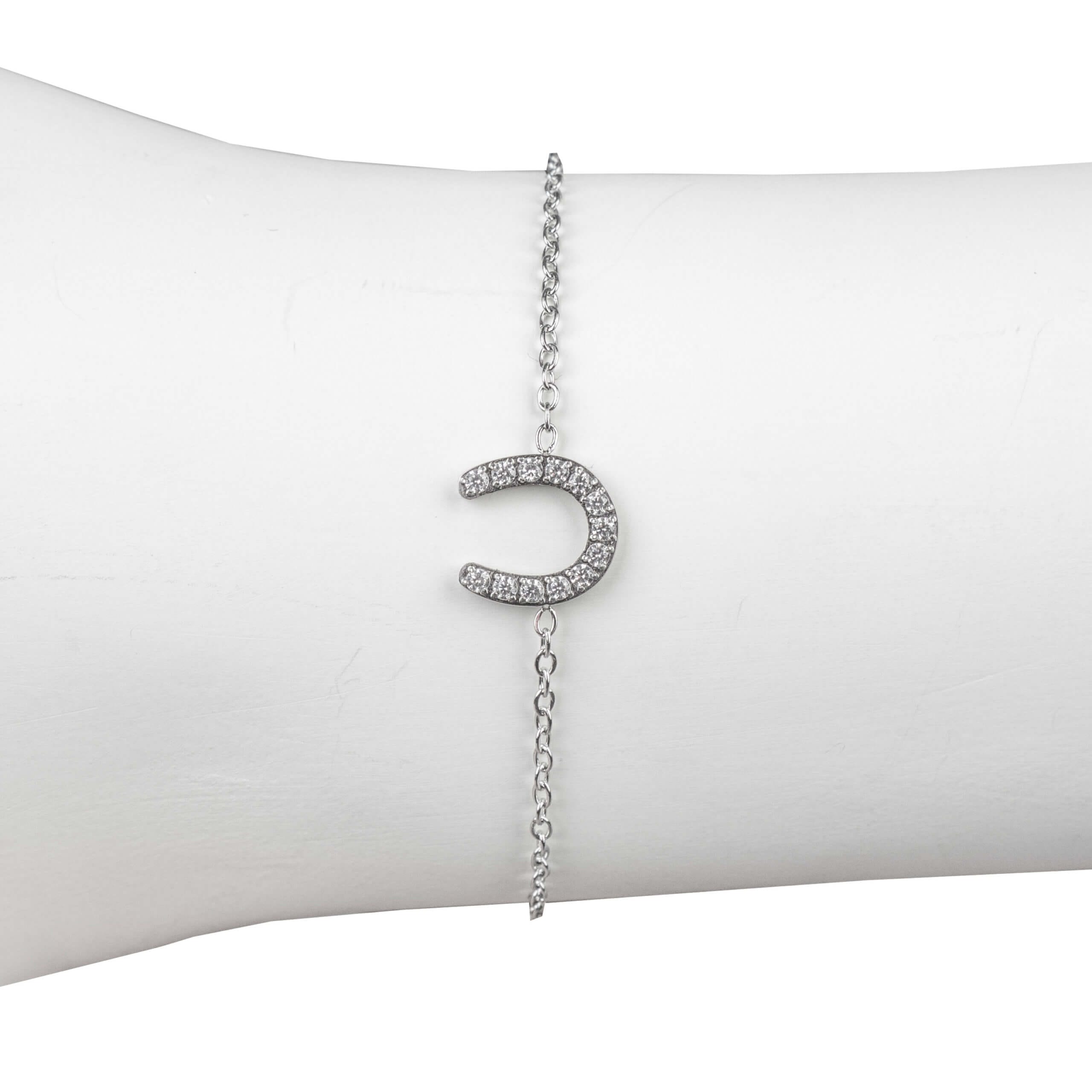 Ketting van roestvrijstaal met een hoefijzer met strass steentjes. Afmetingen < Kortste lengte: 40cm Langste lengte: 45cm