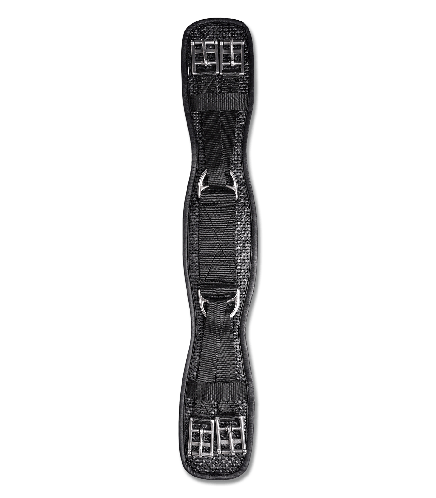 Deze basis dressuursingel van zacht roosterfoam met roestvrijstalen rolgespen biedt optimale singelspanning zonder elastiek. De anatomische vorm voorkomt drukpunten, voor comfort tijdens elke rit. Verstelbare gespen aan beide zijden garanderen een perfecte pasvorm.