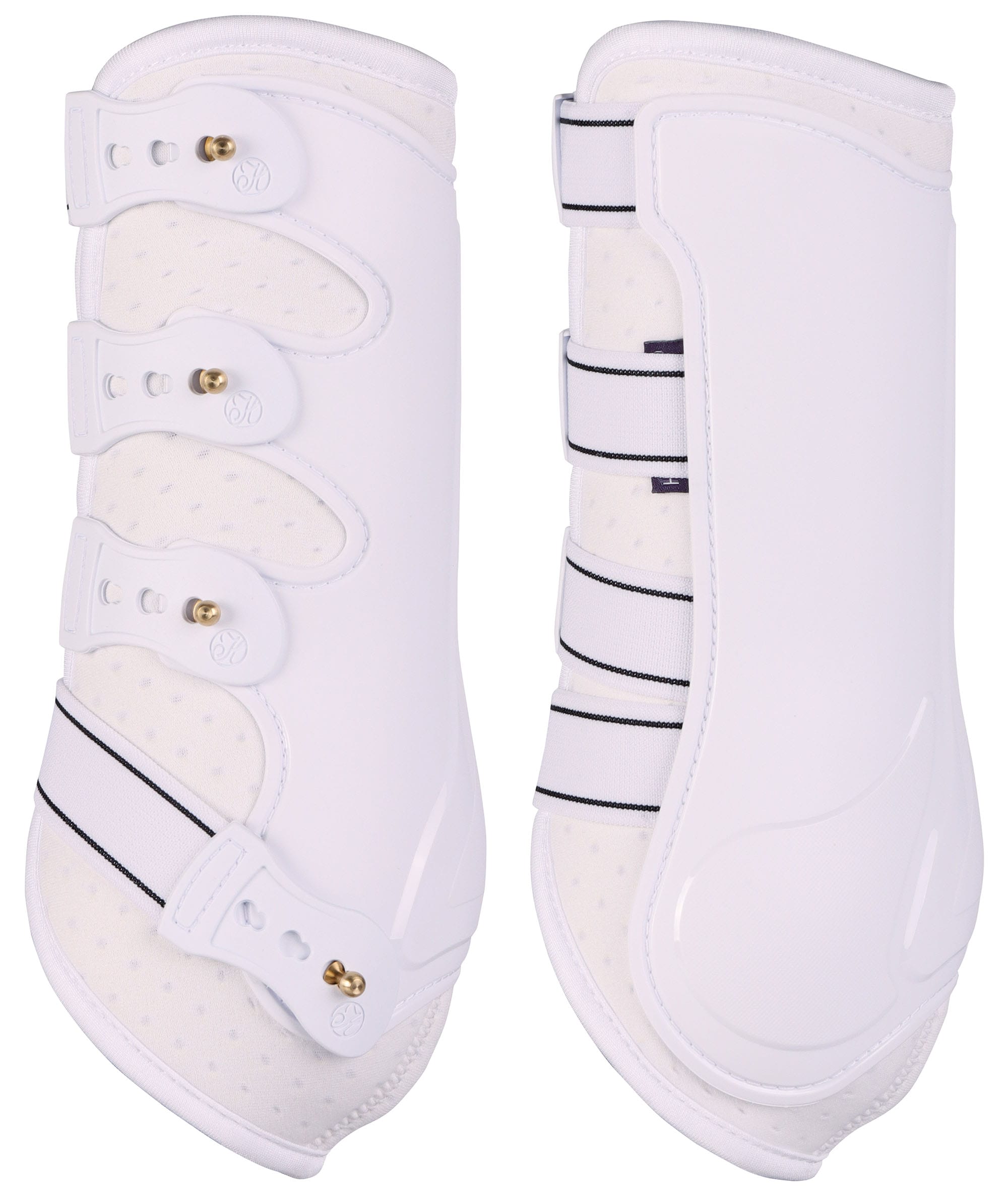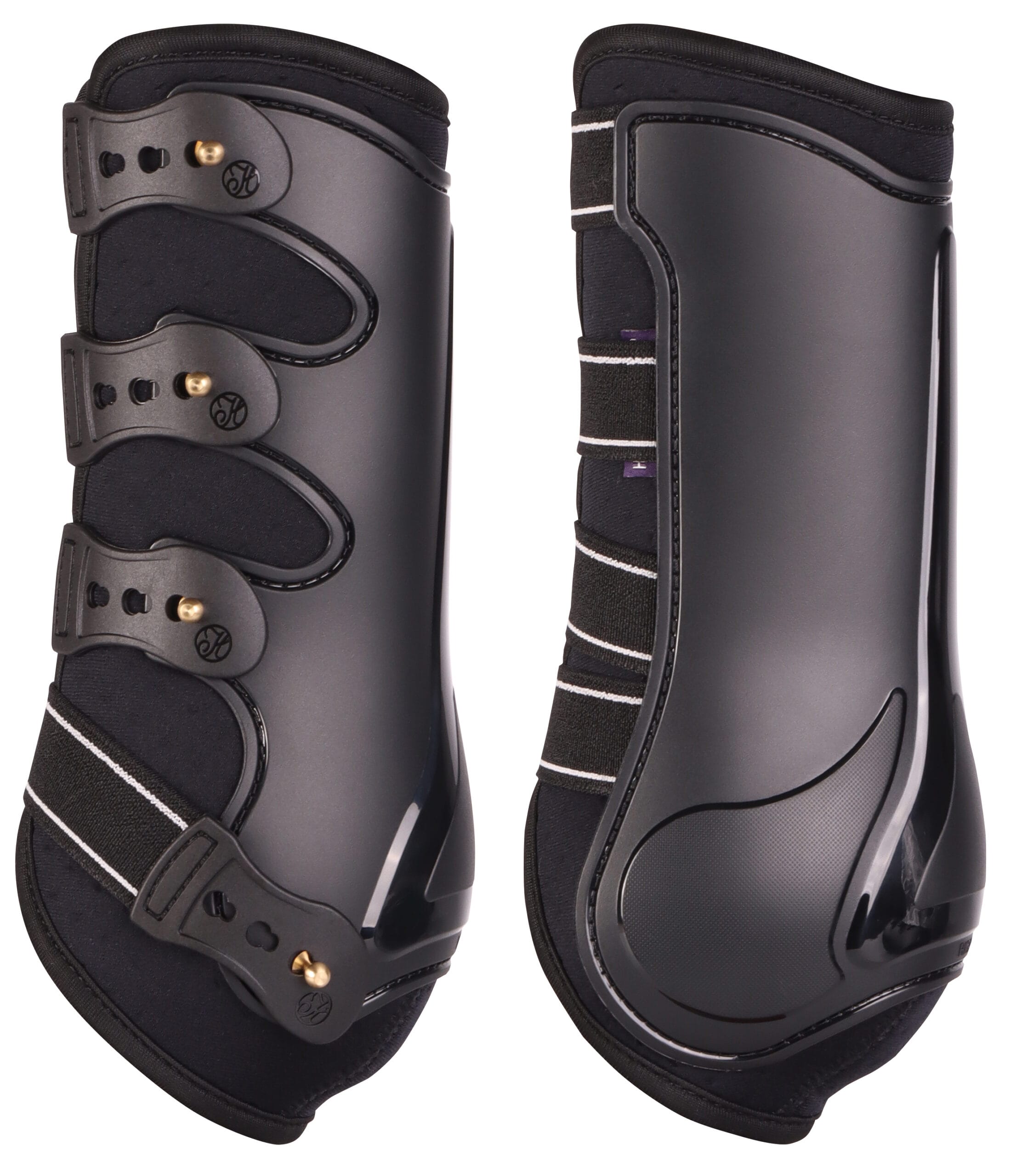 Peesbeschermers met sterke, elastische sluitingen. Volledig uitgevoerd in ademend air-neopreen. Dankzij de optimale pasvorm behoudt het paard veel bewegingsvrijheid. De harde buitenschaal biedt bescherming tegen aantikken.