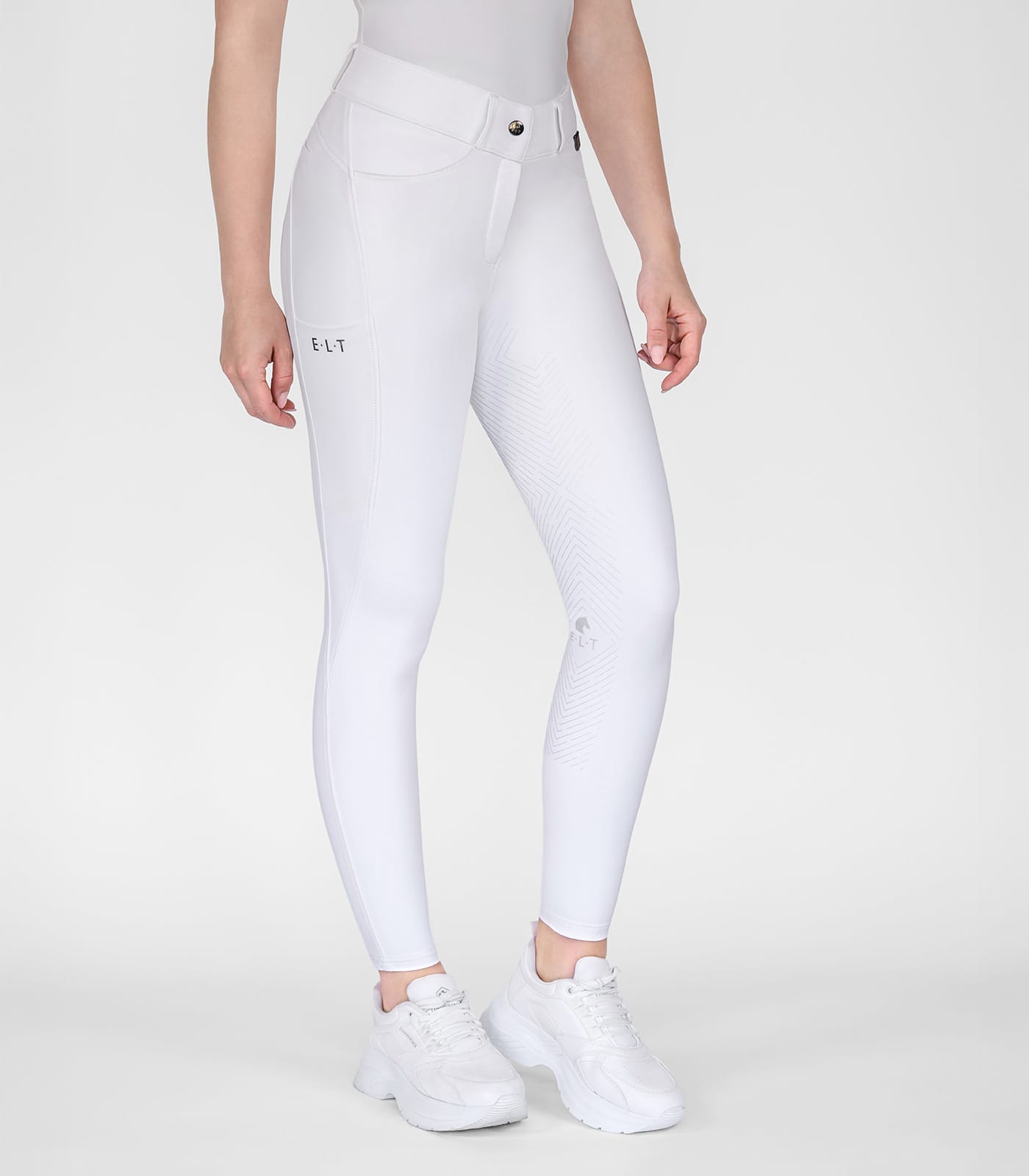 Deze comfortabele rijbroek met siliconen grip biedt optimale houvast in het zadel. Ademend, bi-elastisch en waterafstotend materiaal met gerecyclede vezels. Voorzien van riemlussen, elegante zakken en speciale mobiele telefoonhouder voor gemak tijdens het rijden.