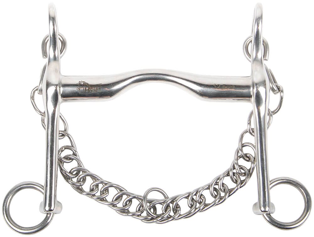 RVS Dressuurstang met een lage tongboog voor veel tongvrijheid. Inclusief kinketting.