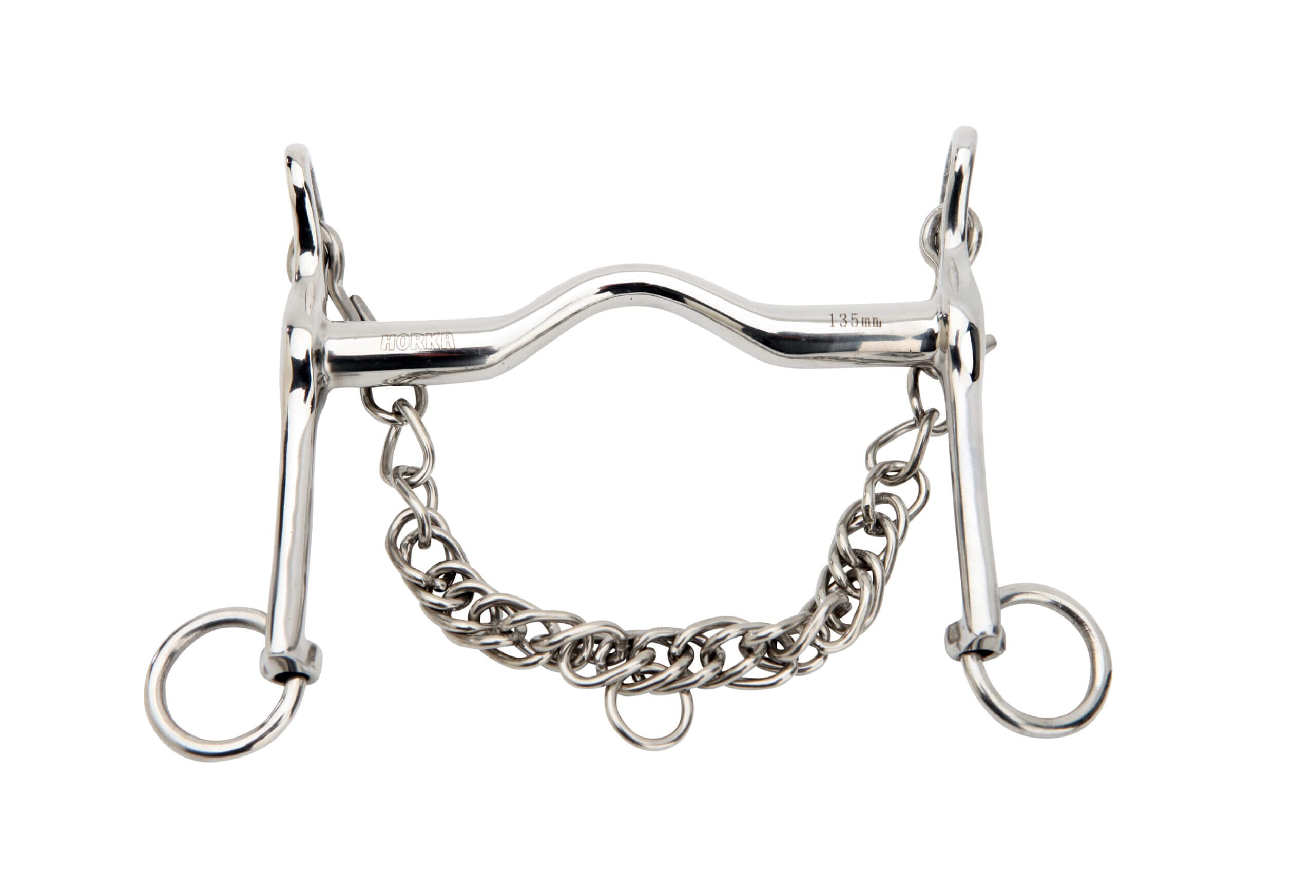 Dressuurstang met tongboog 18 mm vaste scharen. : Productspecificaties: Massief Dikte: 18 mm Scharen: 140 mm Roestvrij staal