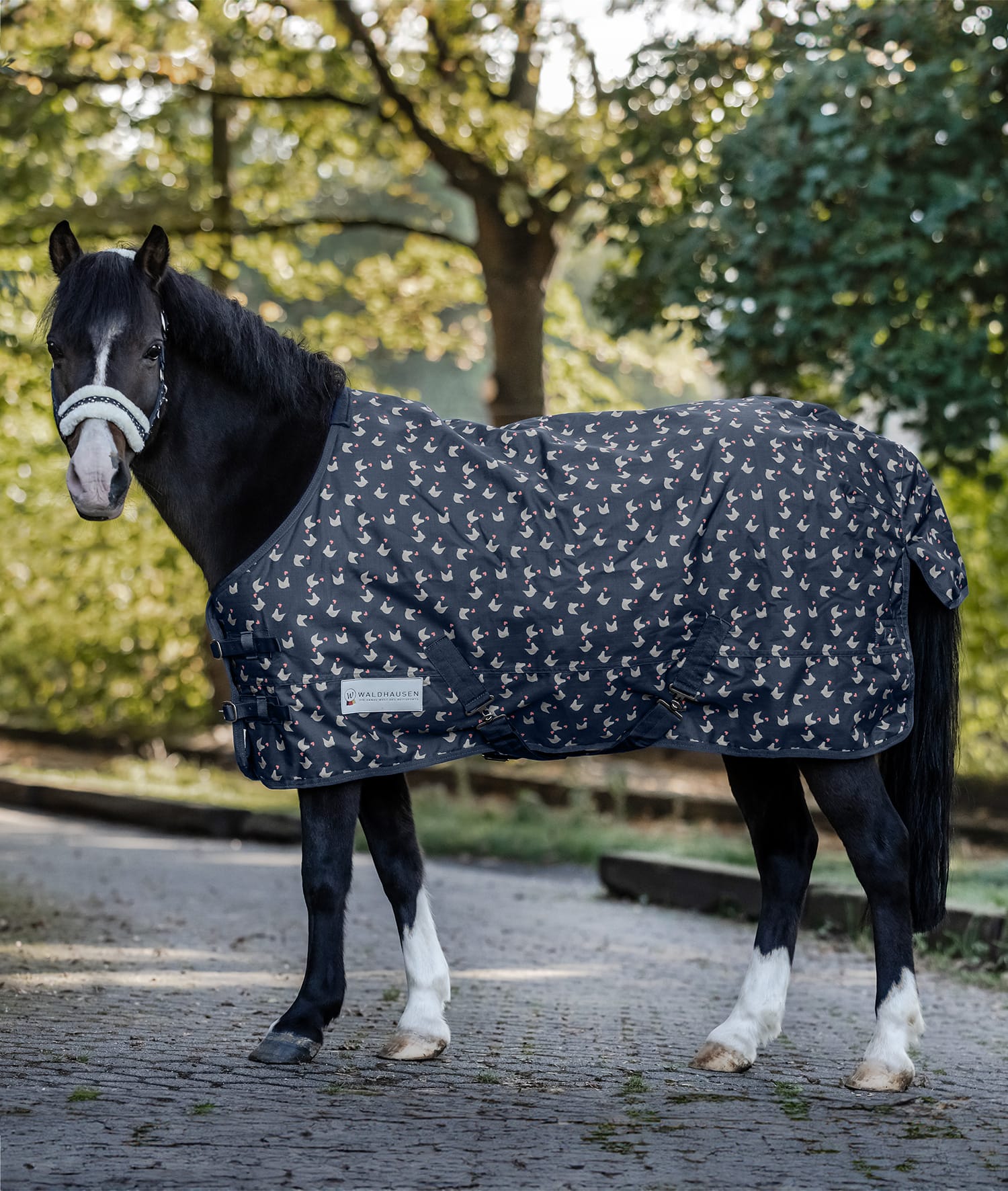 Waterdichte en ademende winterdeken met schattige all-over print. Uitgevoerd in 600 denier met fleecevoering. Voorzien van dubbele borstsluitingen, kruissingels en een geïntegreerde bilkoord. Past bij alle artikelen uit de Waldhausen Lucky serie.