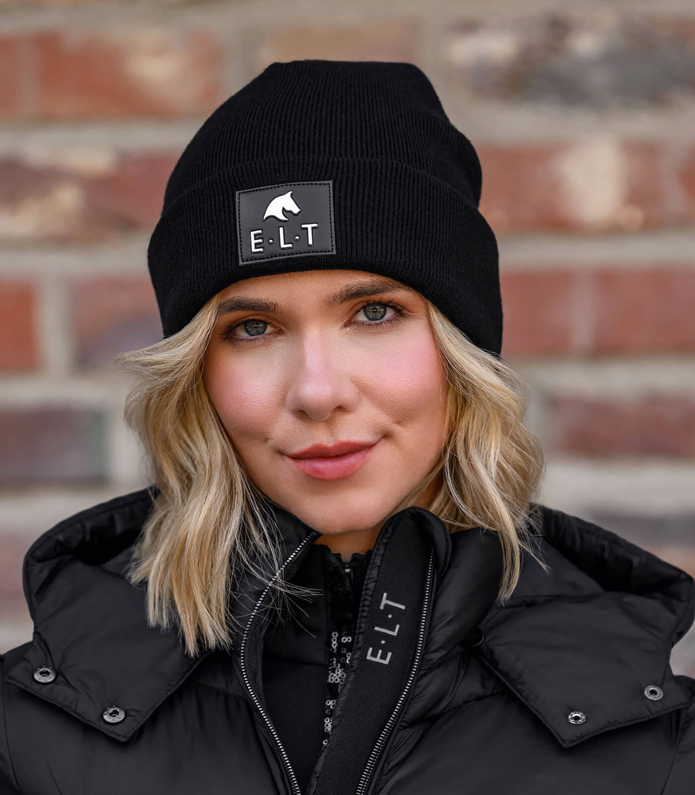Deze gebreide muts is vervaardigd uit fijn ribbreiwerk. Uitgevoerd in klassiek zwart, verrijkt met een hoogwaardige batch voorzien van het E·L·T logo in zilverkleurig design. Ideaal voor elke ruiter.