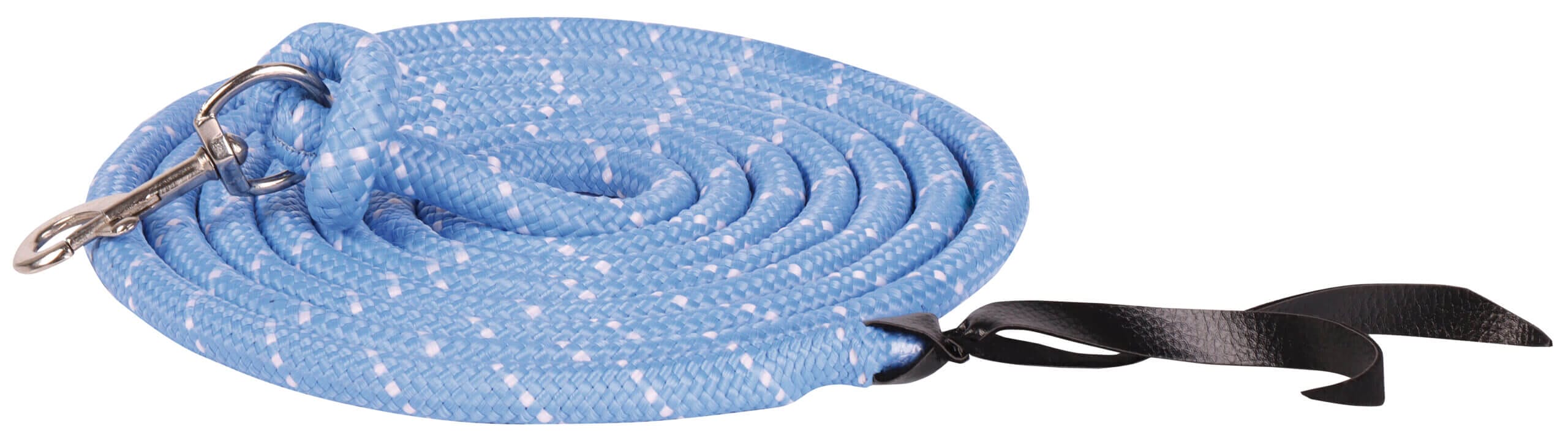 Loswerktouw met zilverkleurige musketon en flapper aan uiteinde. Zeer zacht en ligt prettig in de hand, zeer geschikt voor freestyle/grondwerk.