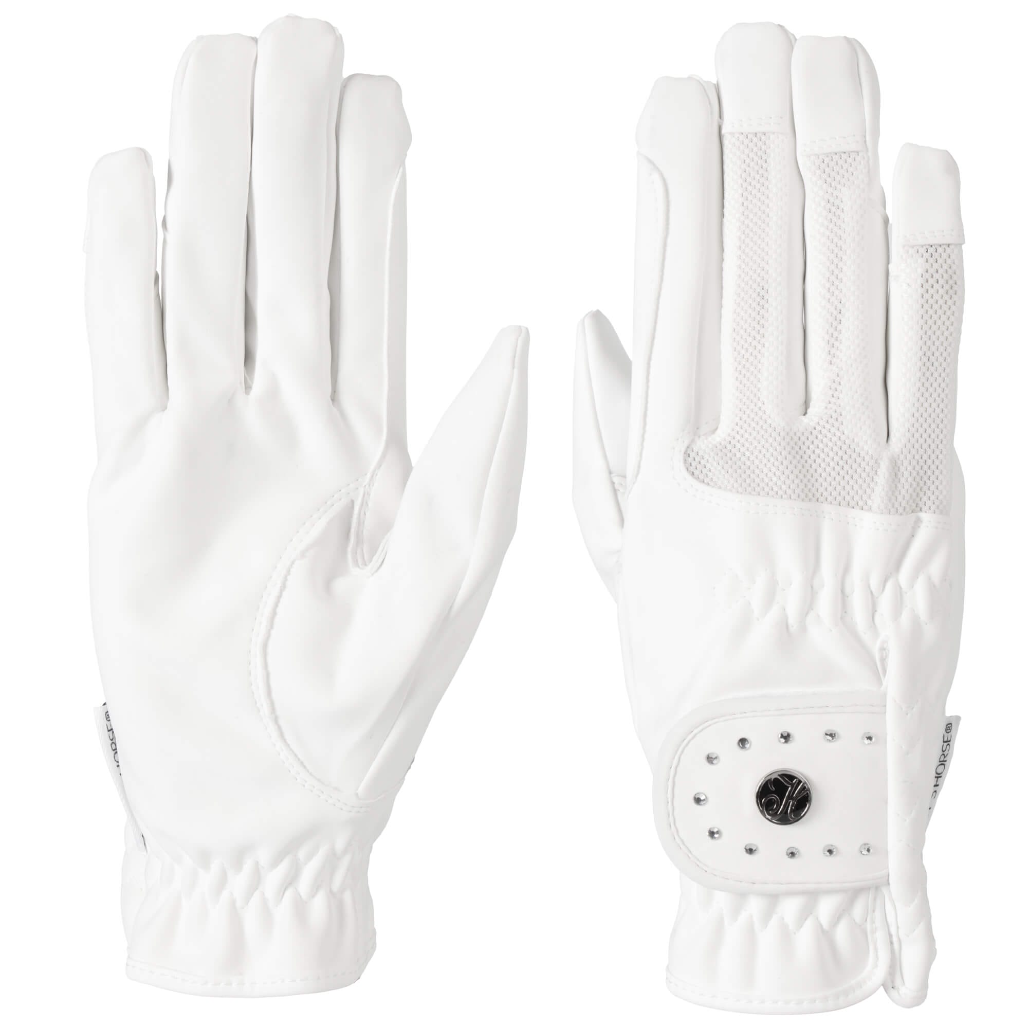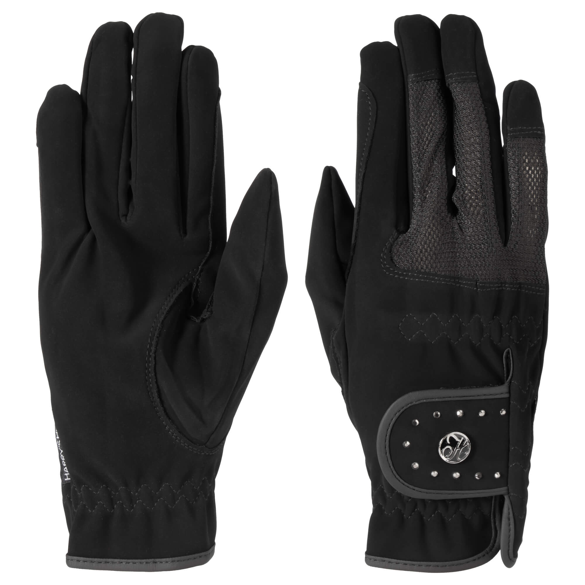 Luxe handschoenen van Domy Suede, ontworpen met elastische inzetstukken op de bewegende delen voor een optimale bewegingsvrijheid. De elegante boord met klittenbandsluiting is afgewerkt met fonkelende kristallen voor een verfijnde uitstraling. Gemaakt van 50% PU en 50% PA. Wasbaar op 30°C.