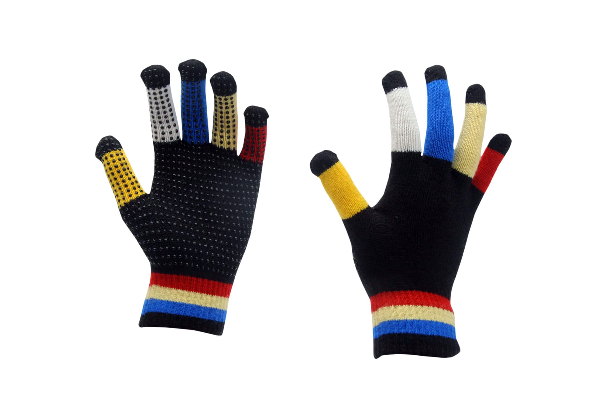 Gebreide elastische handschoen met gripnopjes aan de binnenzijde.