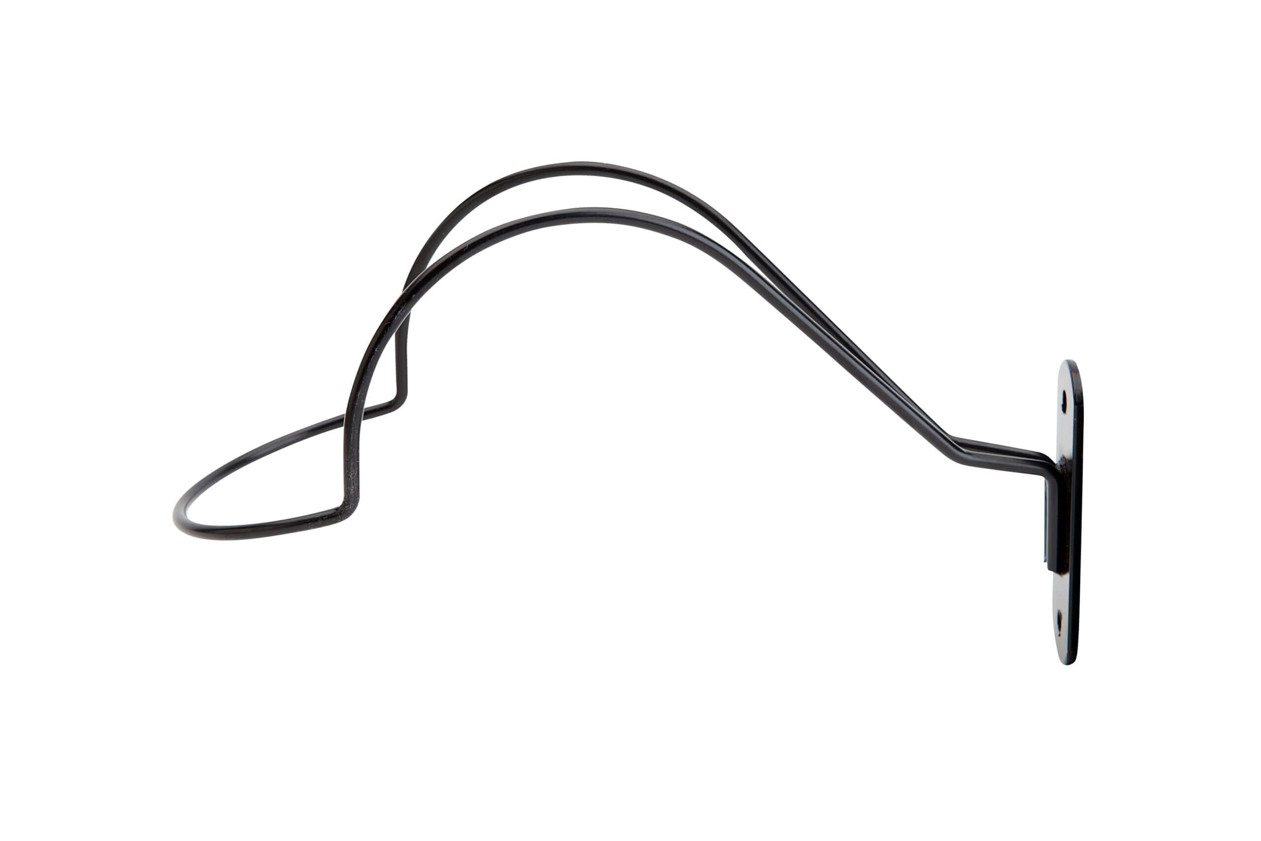 Helmhouder van metaal met zwarte kunstof coating. Te bevestigen aan de wand.