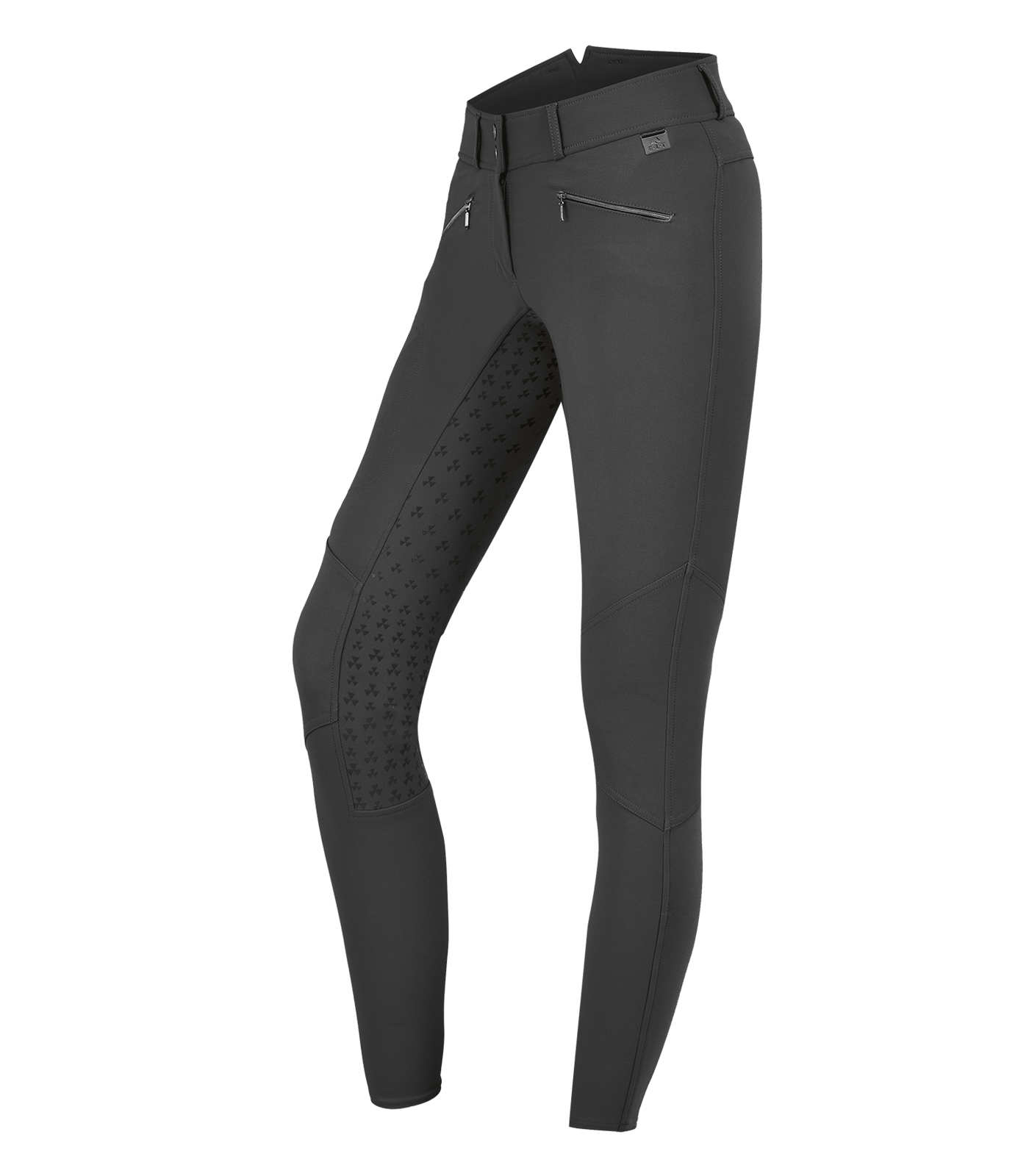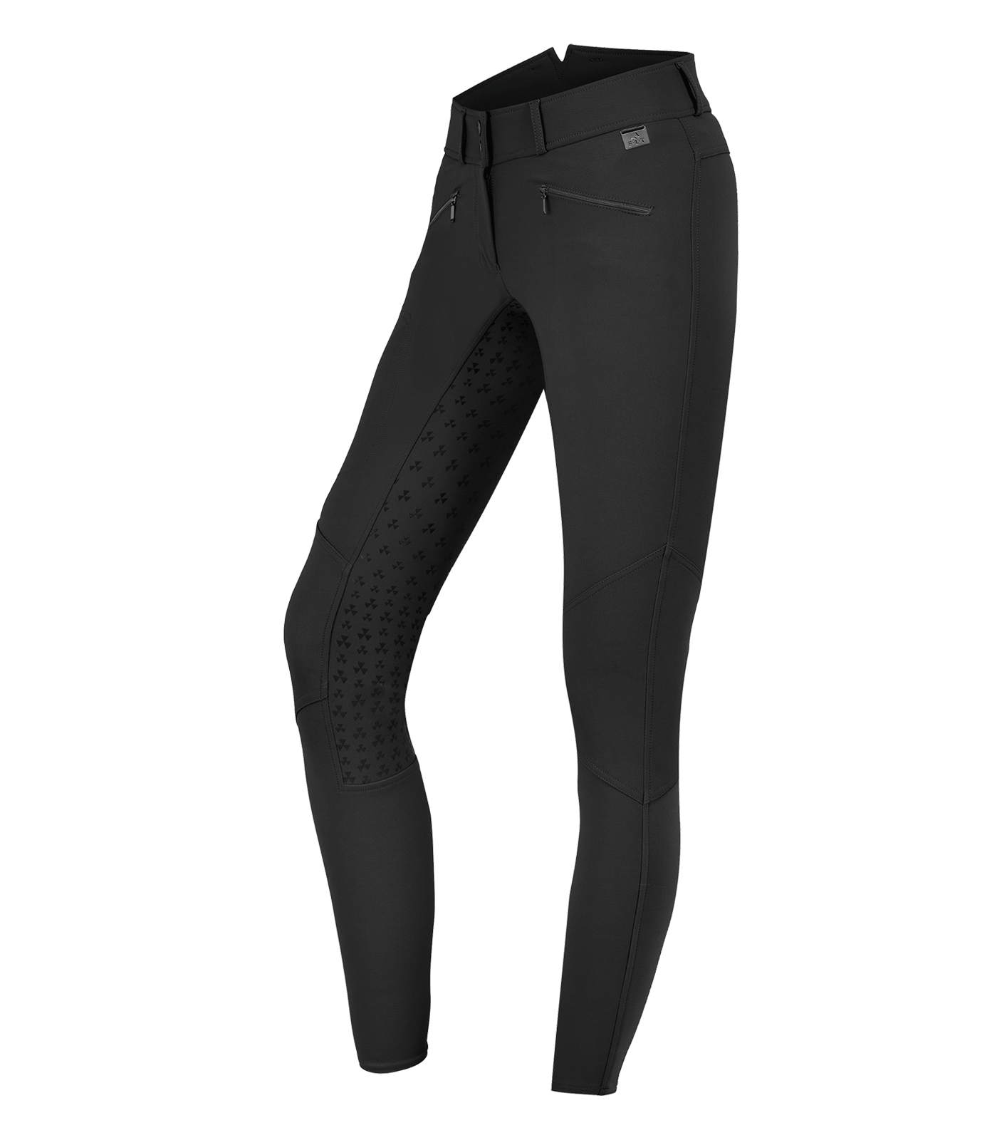 Hooggetailleerde rijbroek met siliconen zitvlak voor optimale grip. Ademend, waterafstotend en bi-elastisch materiaal voor comfort. Voorzien van elastische beenmanchetten en ritszakken, inclusief een zak speciaal voor je mobiele telefoon. Verfraaid met hoogwaardige E·L·T metalen tag.