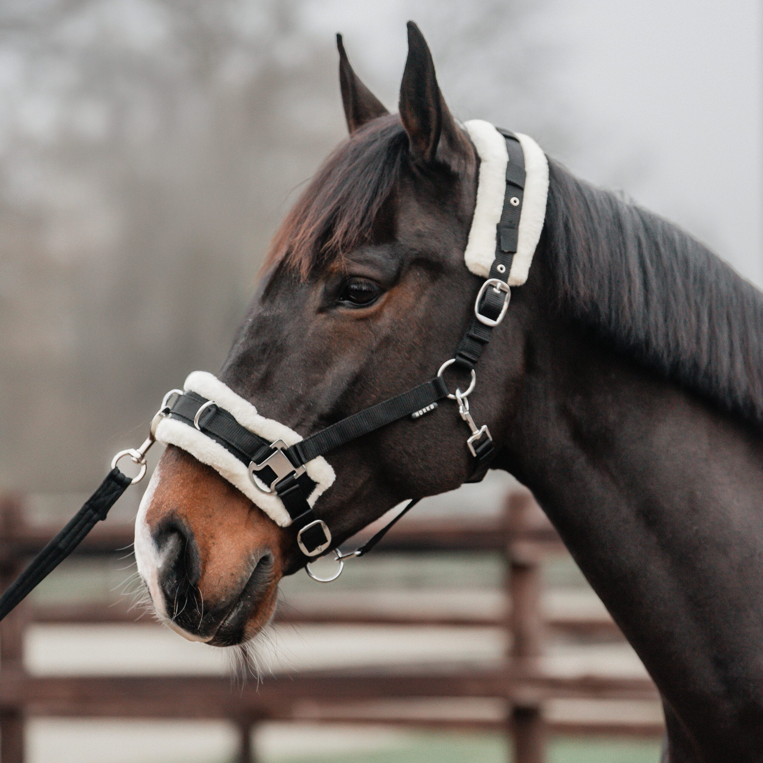 Kaptoom met zachte voering voor extra comfort. Productspecificaties: < 3 metalen ringen op de neusriem voor het bevestigen van bijvoorbeeld de longeerlijn Imitatiebont voering Verstelbaar kopstuk en neusriem Materiaal: < Polyester en imitatie bont. Fournituren: ijzer met nikkel coating