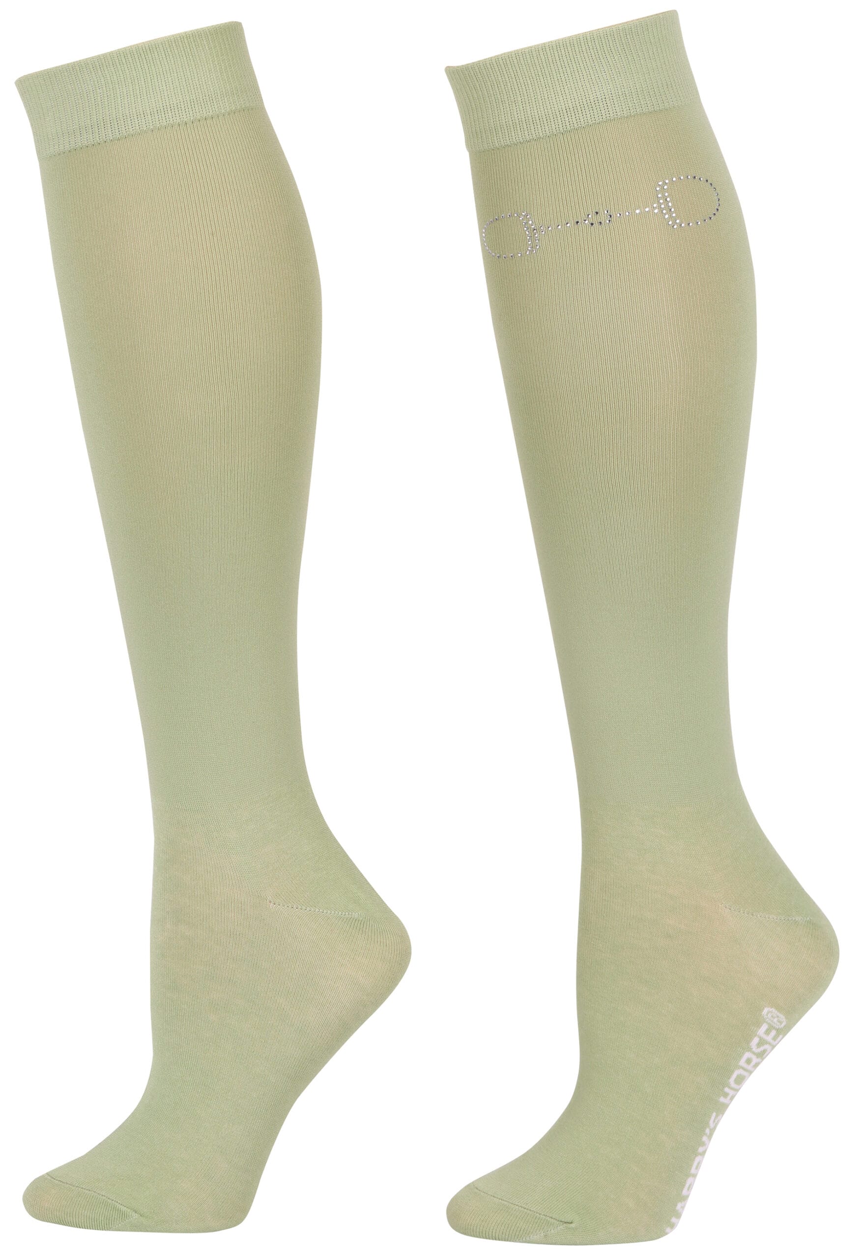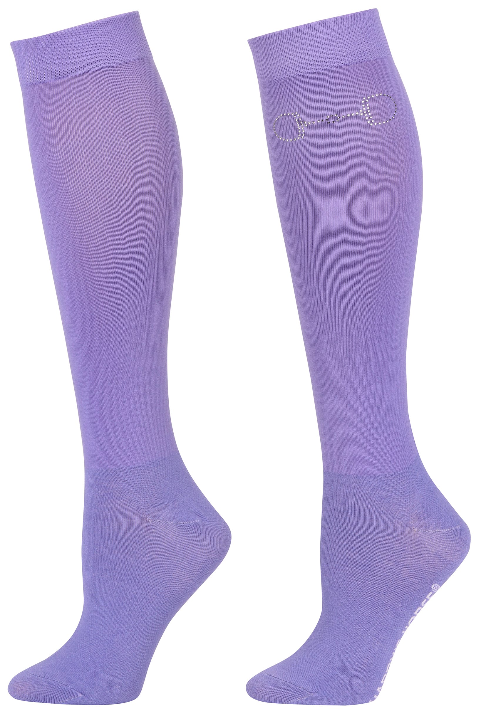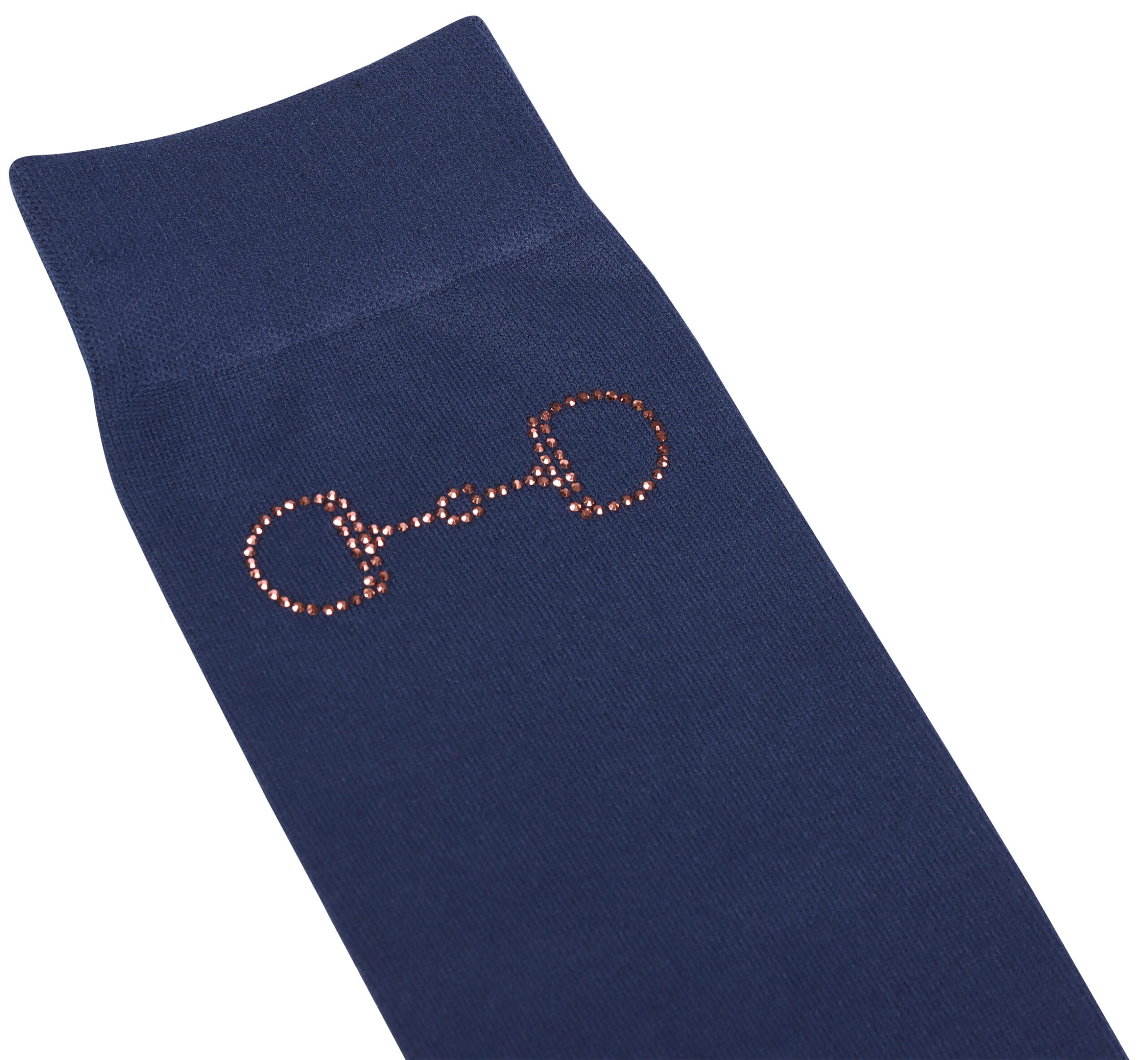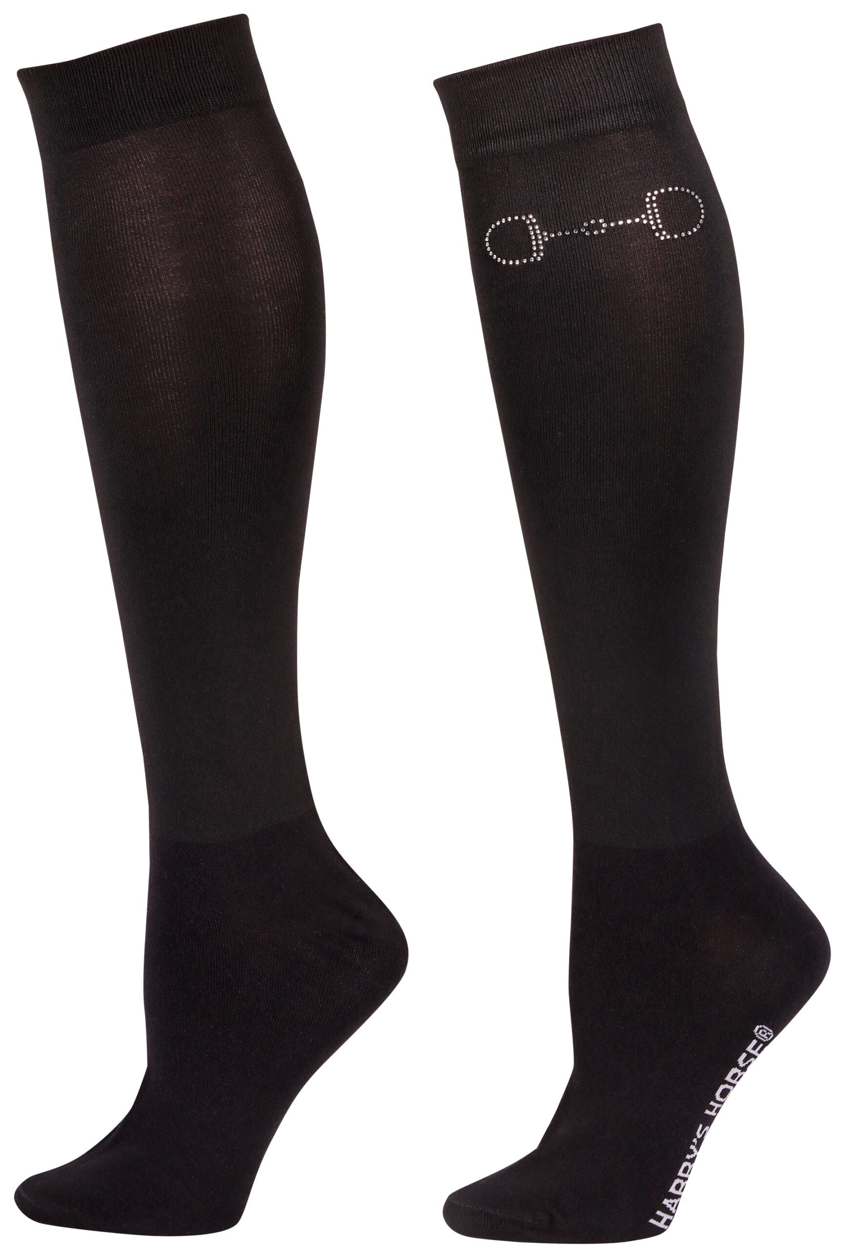 Comfortabele kniekousen gedecoreerd met kristallen in de vorm van een bit.