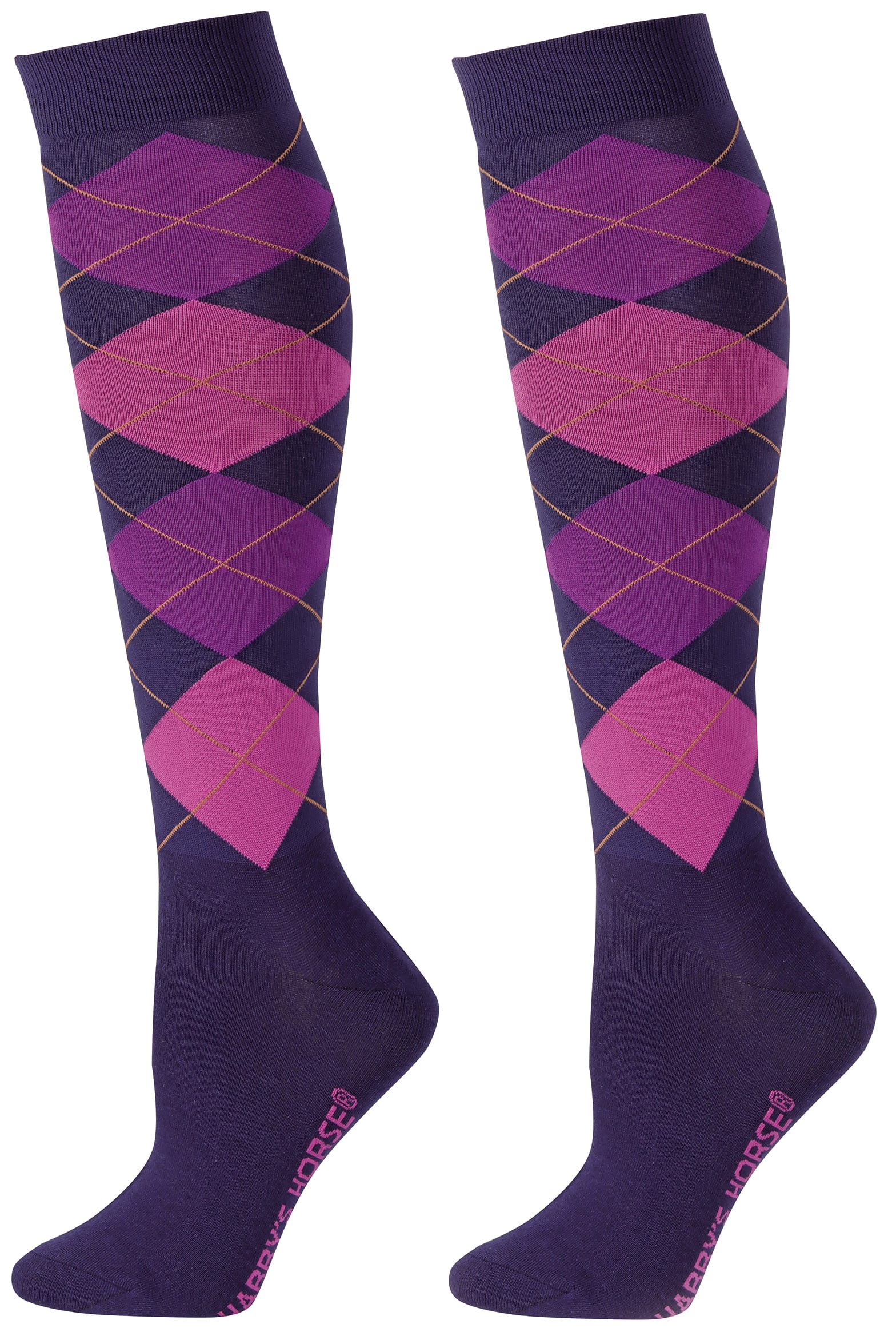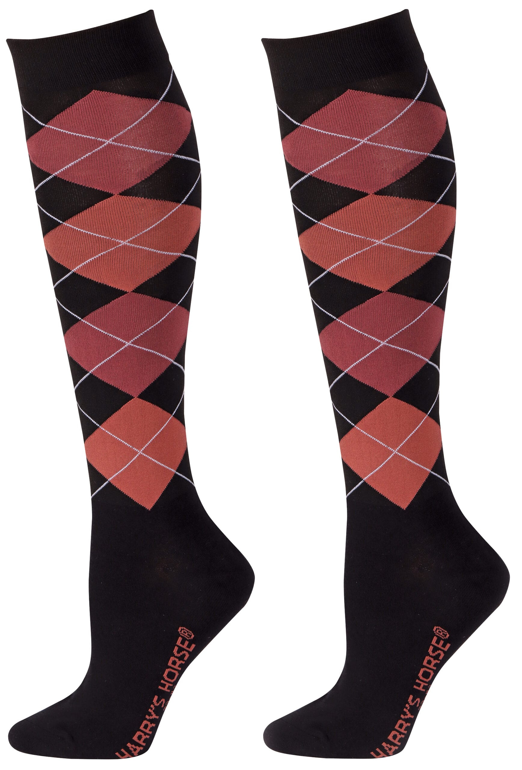 Comfortabele dunne kniekousen met een argyle ruit patroon.