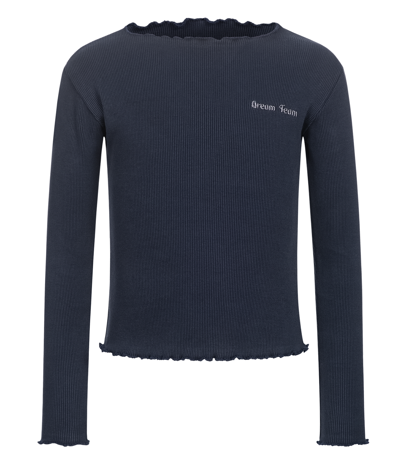 Kinder top met lange mouwen, geribbeld katoen, ademend. Voorzien van geborduurde 'Dream Crew'-tekst op de borst en E·L·T label aan de zoom. Ideaal voor elke jonge ruiter.