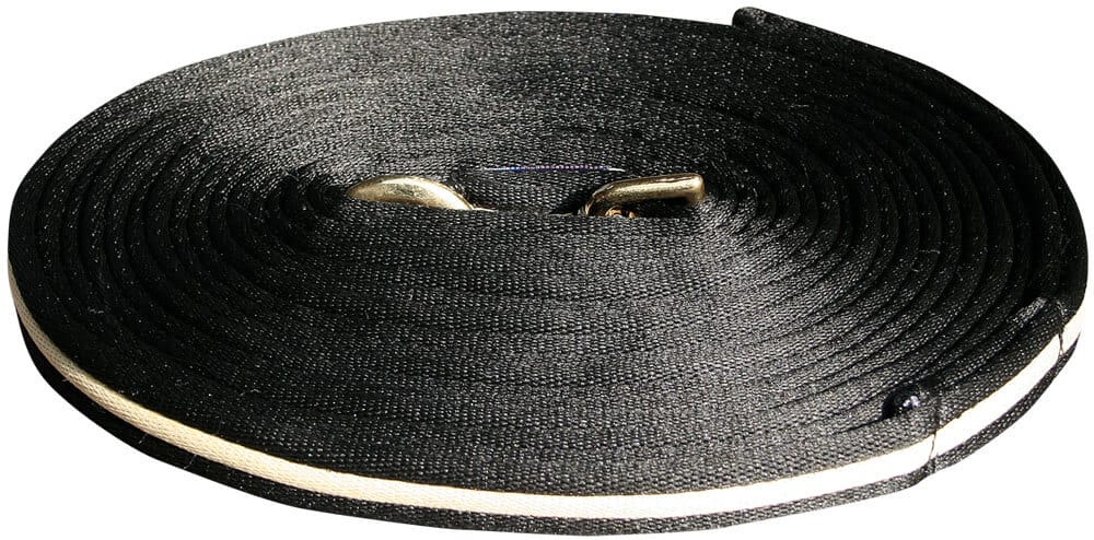 Soft longeerlijn met vrijdraaiende muskaton en lus aan einde. Lengte 8 meter. Verpakt in transparant opbergtas met rits.