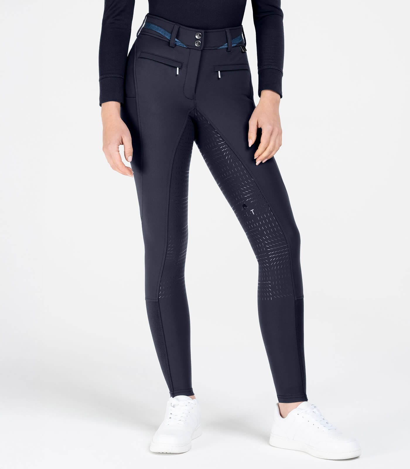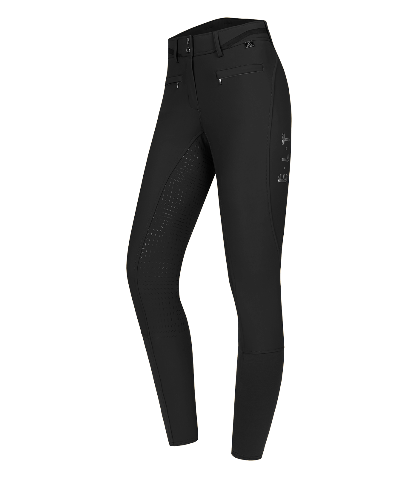 De Maja glam curved rijbroek combineert stijl met functionaliteit. Voorzien van een siliconen full body voor optimale grip, ademend en vormvast materiaal. Inclusief elegante satijnen tailleband en handige zakken voor uw mobiele telefoon.