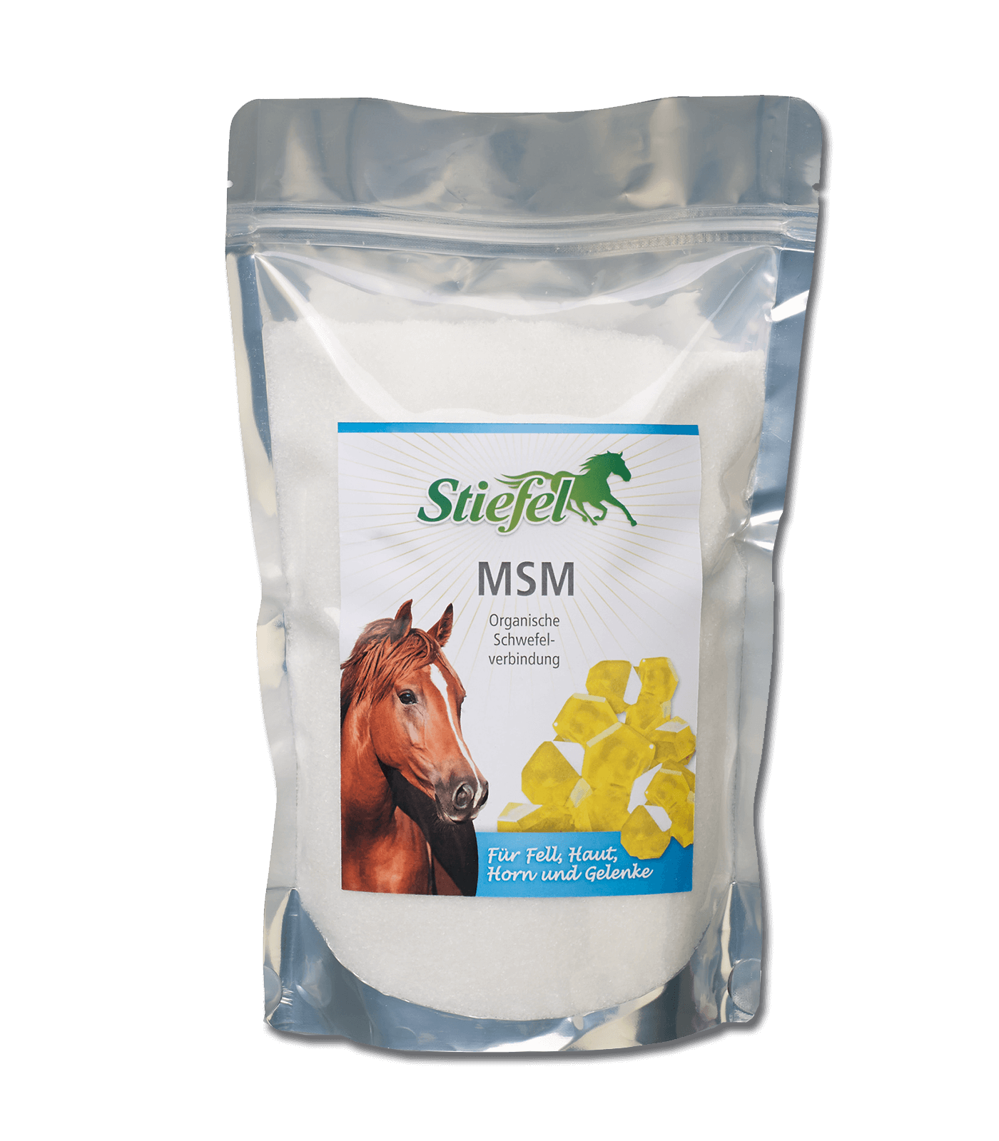 Stiefel MSM is een organisch zwavelhoudend supplement dat de gewrichtsstofwisseling ondersteunt en bijdraagt aan een gezonde vacht en hoefgroei.