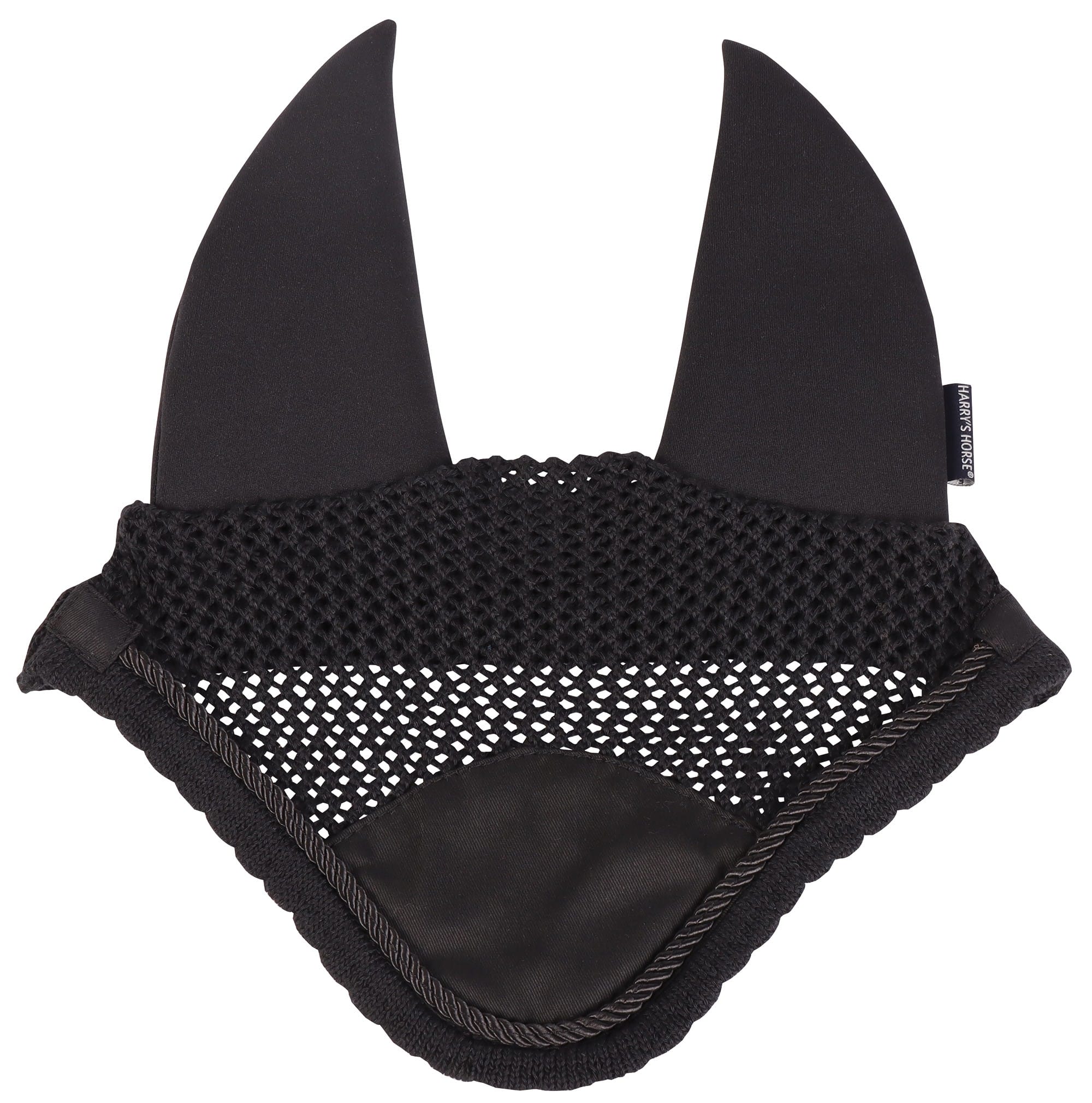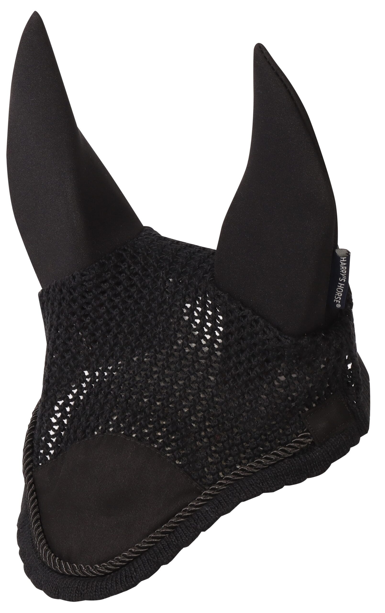 Oornetje met neoprene, geluidsdempende oren. Gehaakt, voorzien van gevlochten sierkoorden en contrasterende bies.