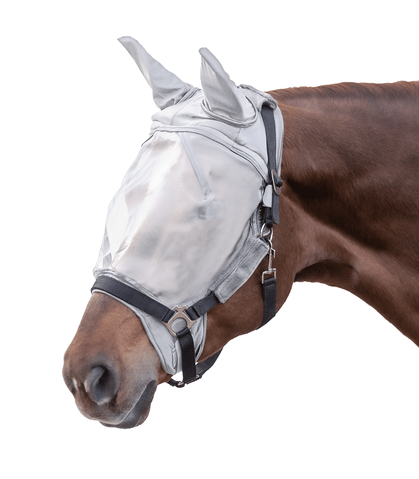 Het premium vliegenmasker is vervaardigd uit duurzaam, fijnmazig gaas met zachte bontvoering bij het voorhoofd om schuren te voorkomen. Verkrijgbaar in maten Full, Cob, PON, XFull en kleuren zwart, zilvergrijs. Velcro sluitingen bieden een makkelijke bevestiging.