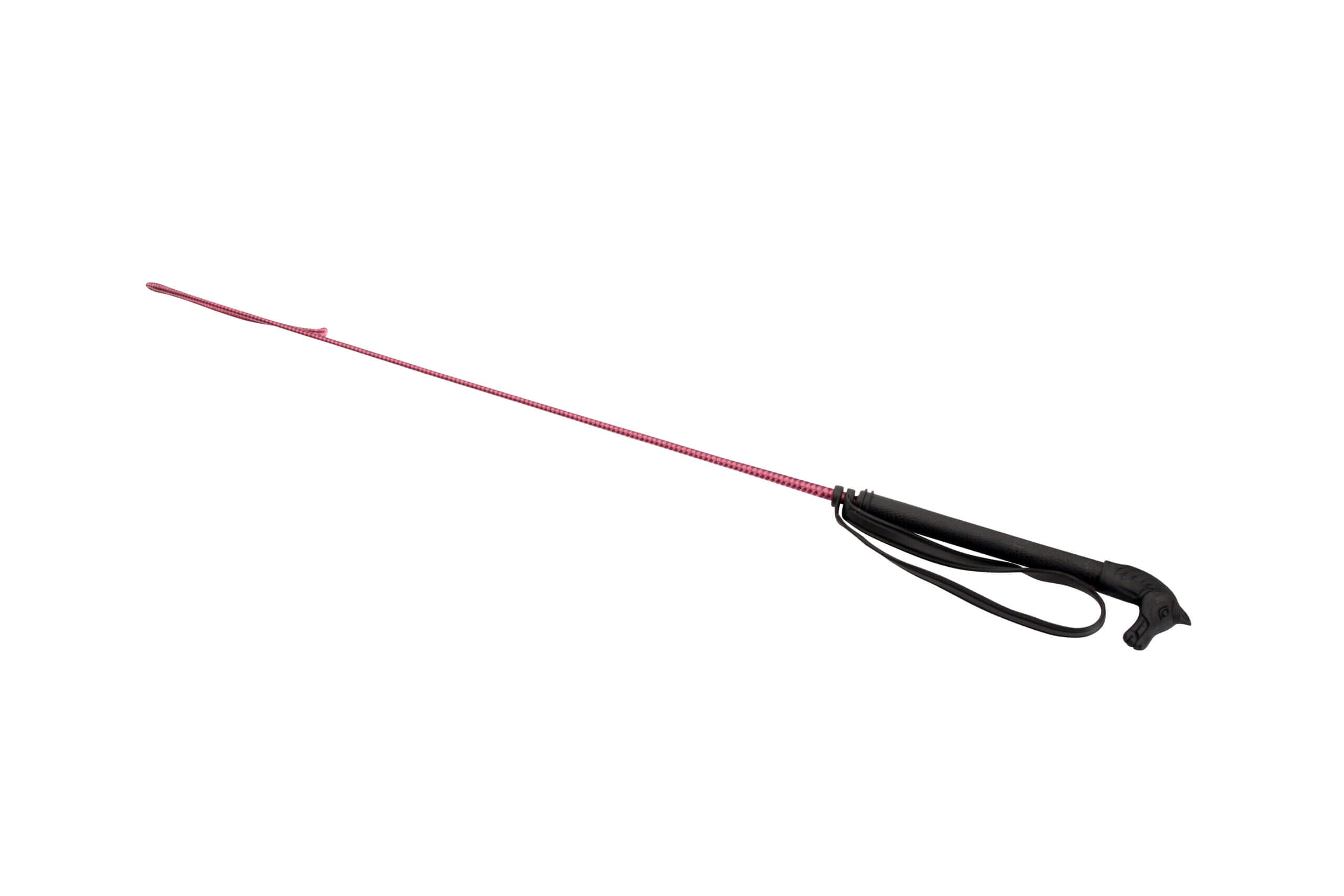 Racezweep met paardenhoofd. De lengte van de zweep is incl. slag gemeten.