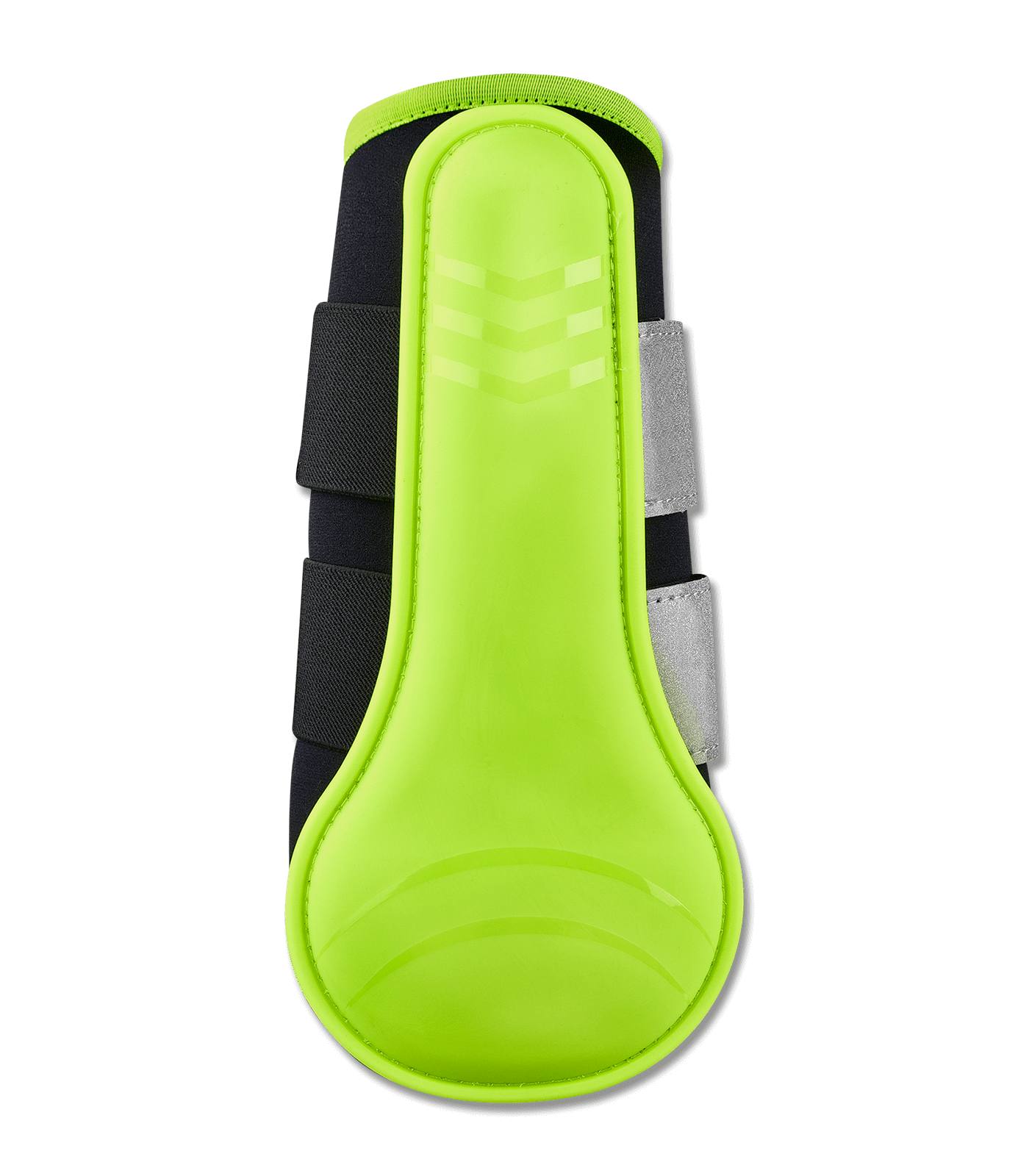 Voorzien van een harde binnenkant, reflecterende sluitingen en een zachte binnenvoering voor stevige bevestiging rondom het paardenbeen.