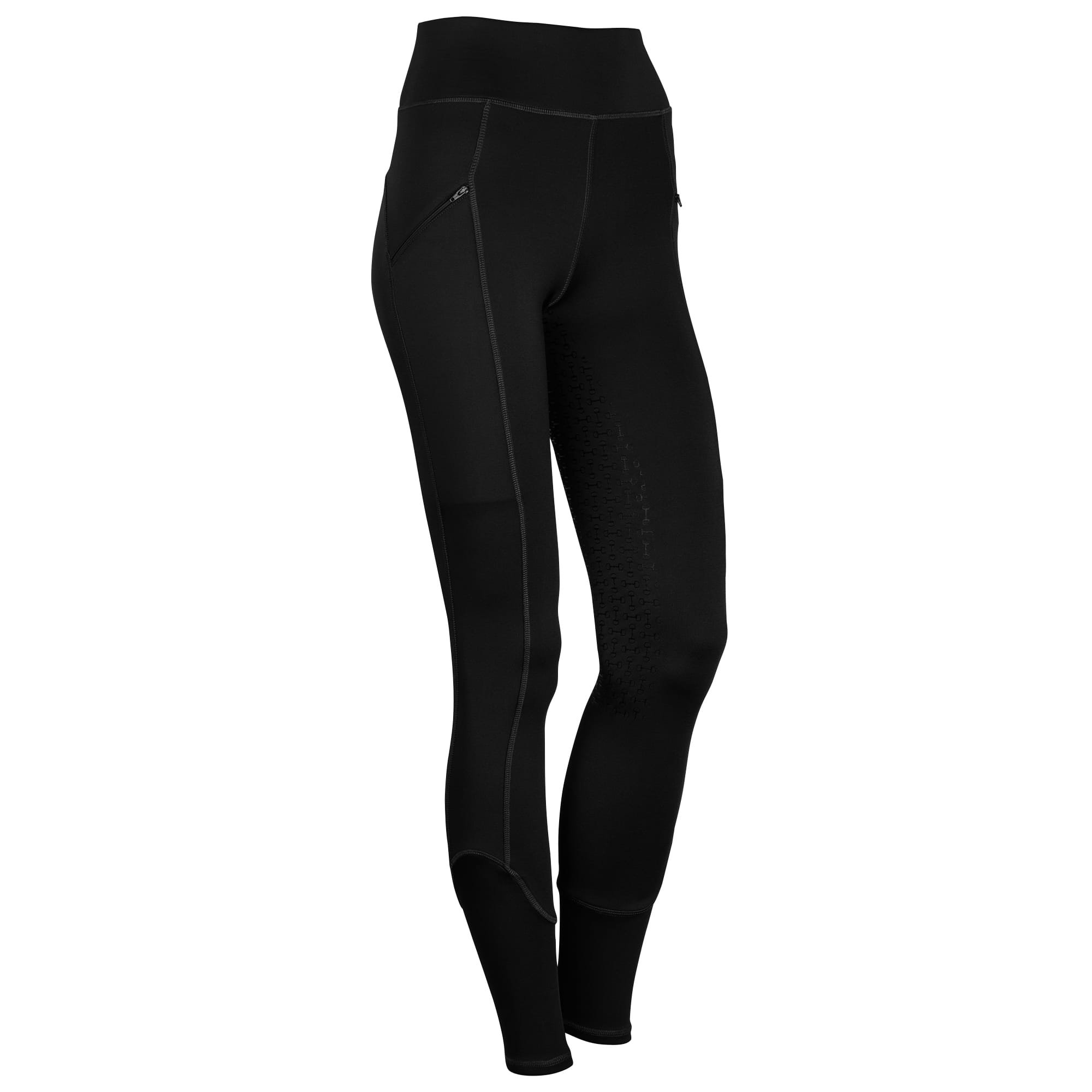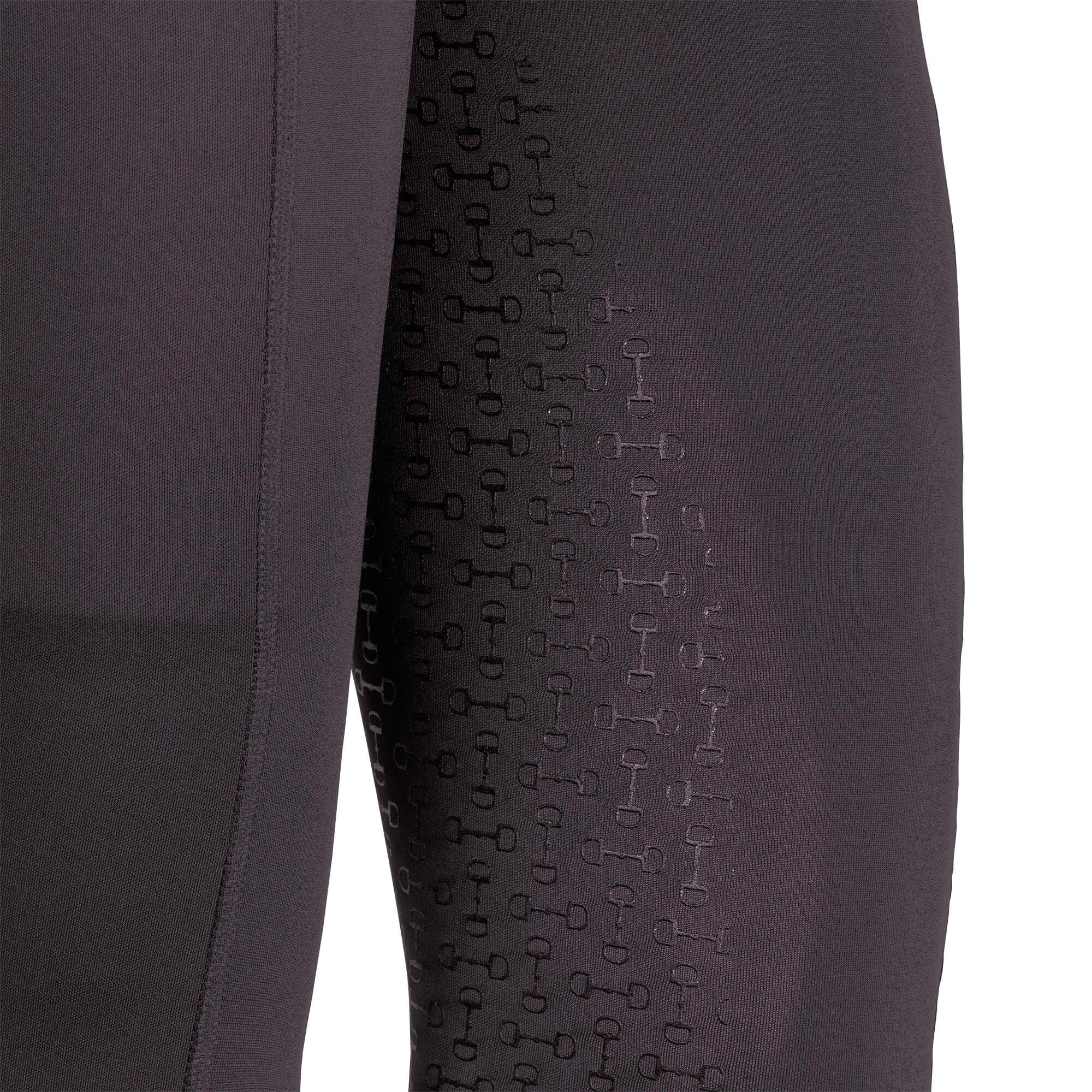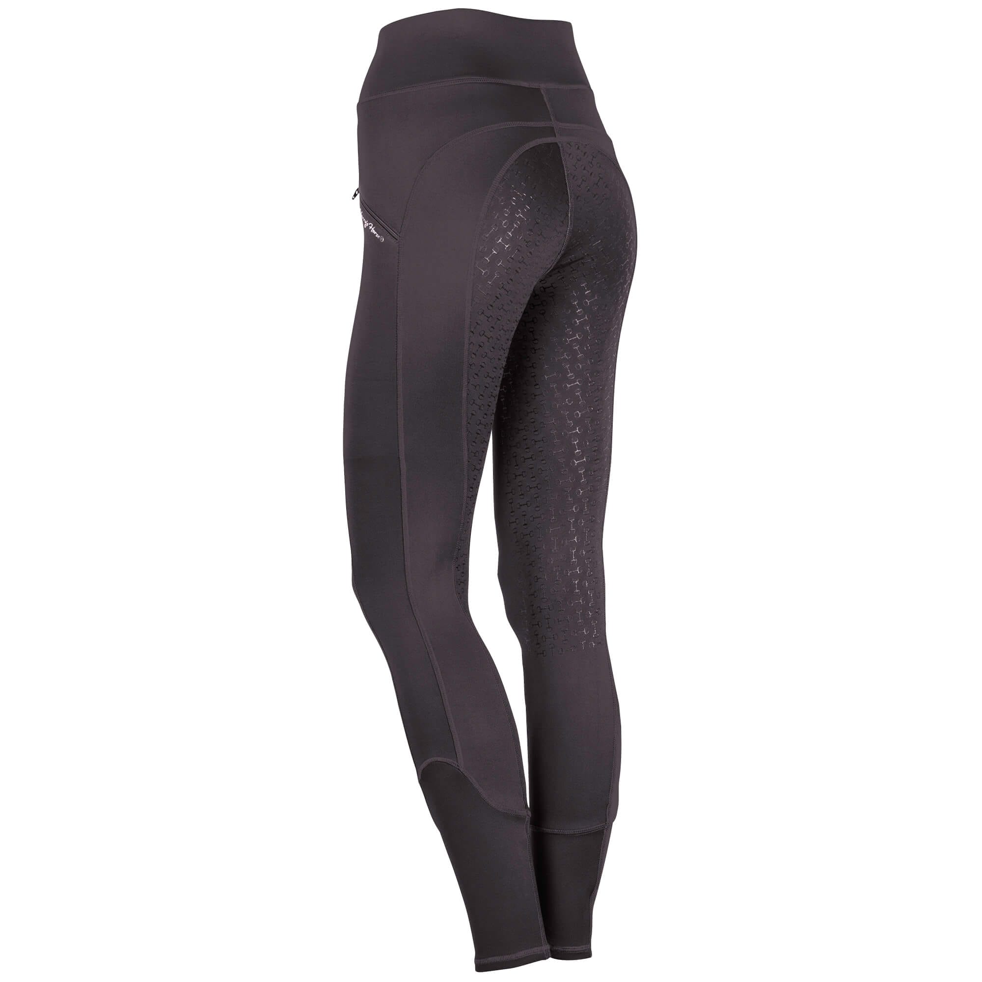Paardrijlegging gemaakt van een zeer comfortabele en elastische stof. De broek is voorzien van twee zakken met een ritssluiting aan de zijkant, rondgenaaid zitvlak met siliconen voor extra grip in het zadel en “flex legs” voor extra comfort in de rijlaarzen. 90% polyester / 10% elastan