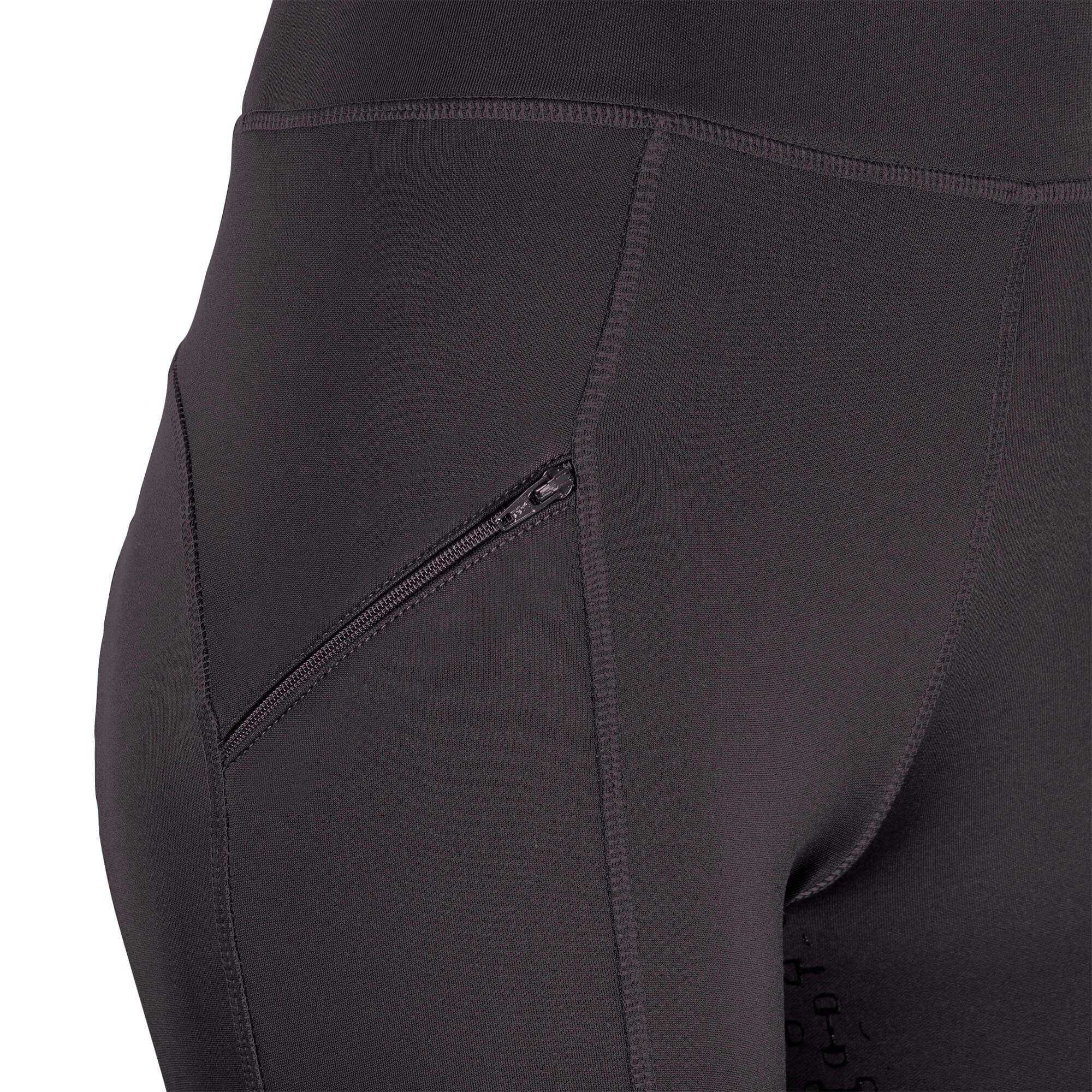 Paardrijlegging gemaakt van een zeer comfortabele en elastische stof. De broek is voorzien van twee zakken met een ritssluiting aan de zijkant, rondgenaaid zitvlak met siliconen voor extra grip in het zadel en “flex legs” voor extra comfort in de rijlaarzen.