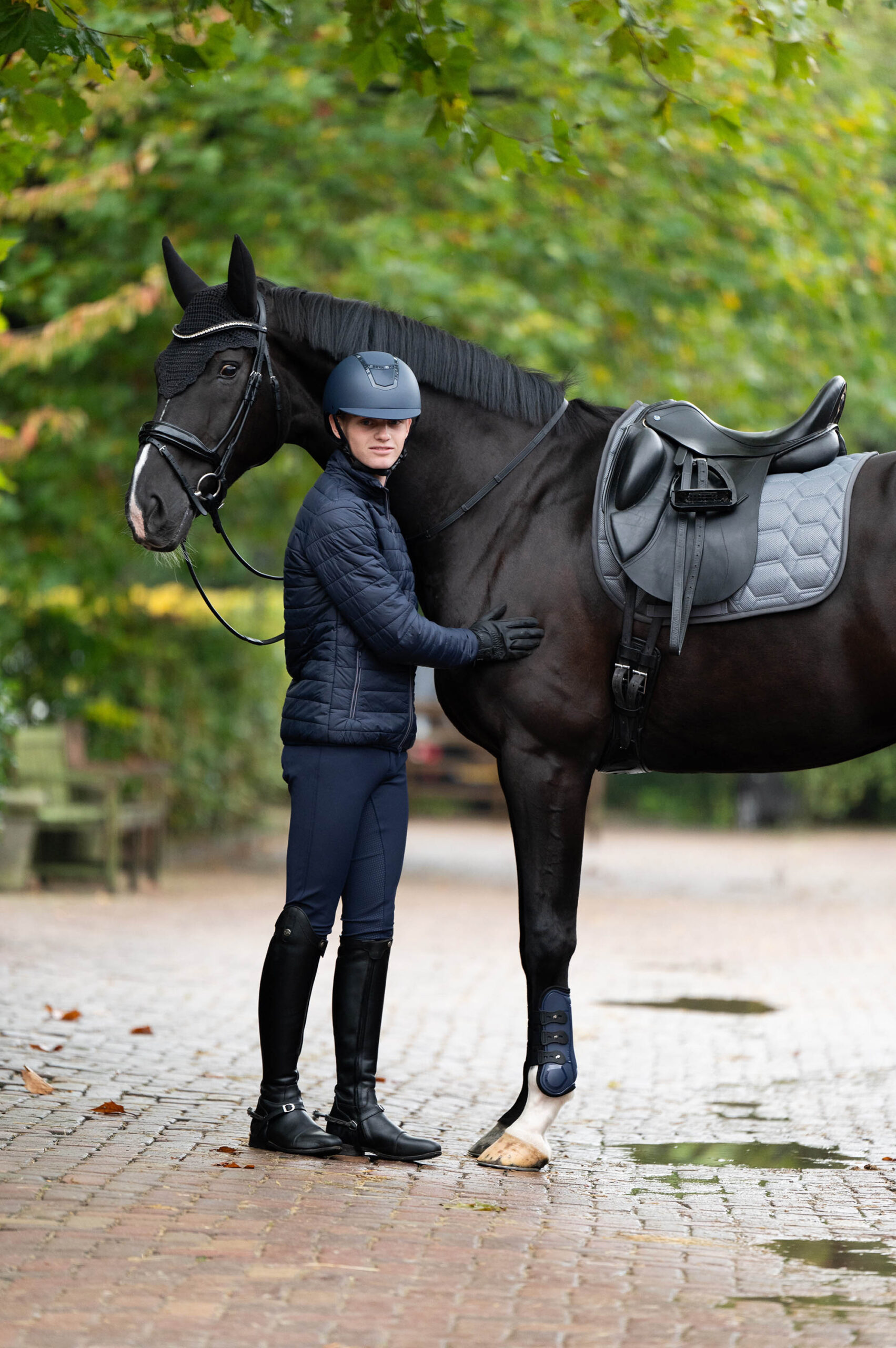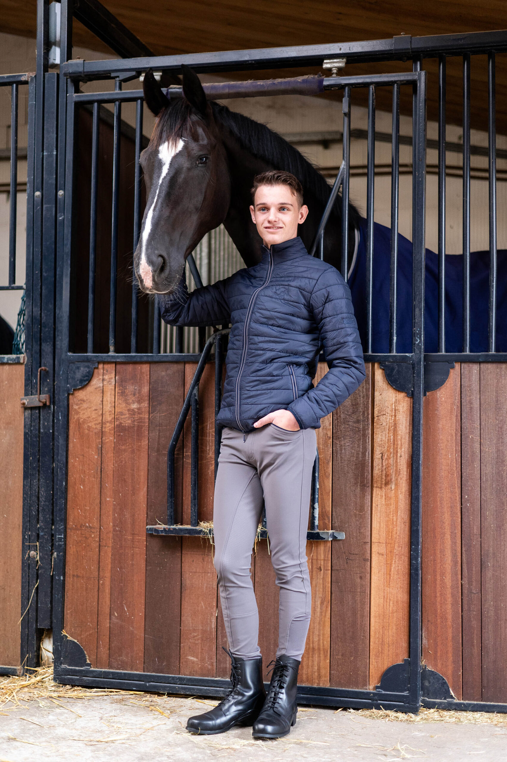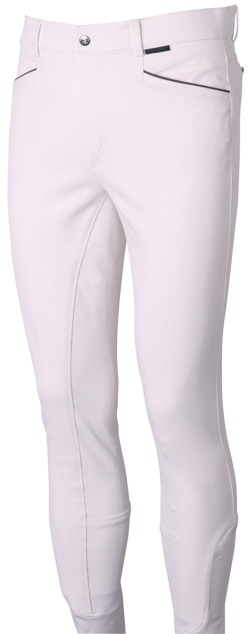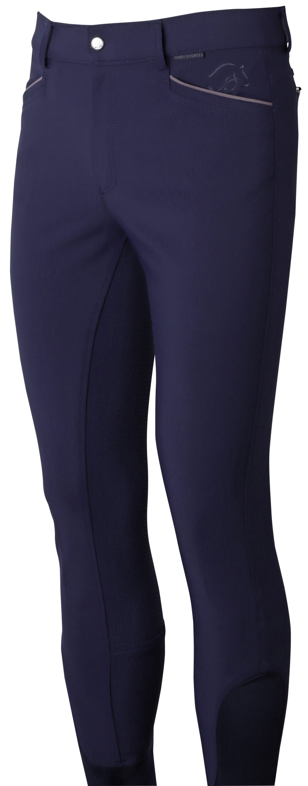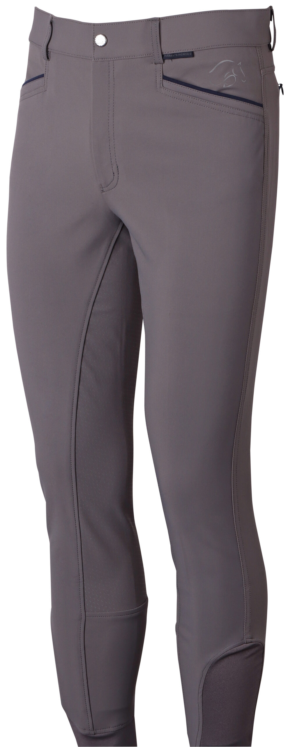Rijbroek met steekzakken, twee kontzakken met ritssluiting, sierbies bij alle zakken, rondgenaaid zitvlak met siliconen print voor extra grip in het zadel en een elastische uitsparing rond de enkels voor meer comfort in de paardrijlaarzen.