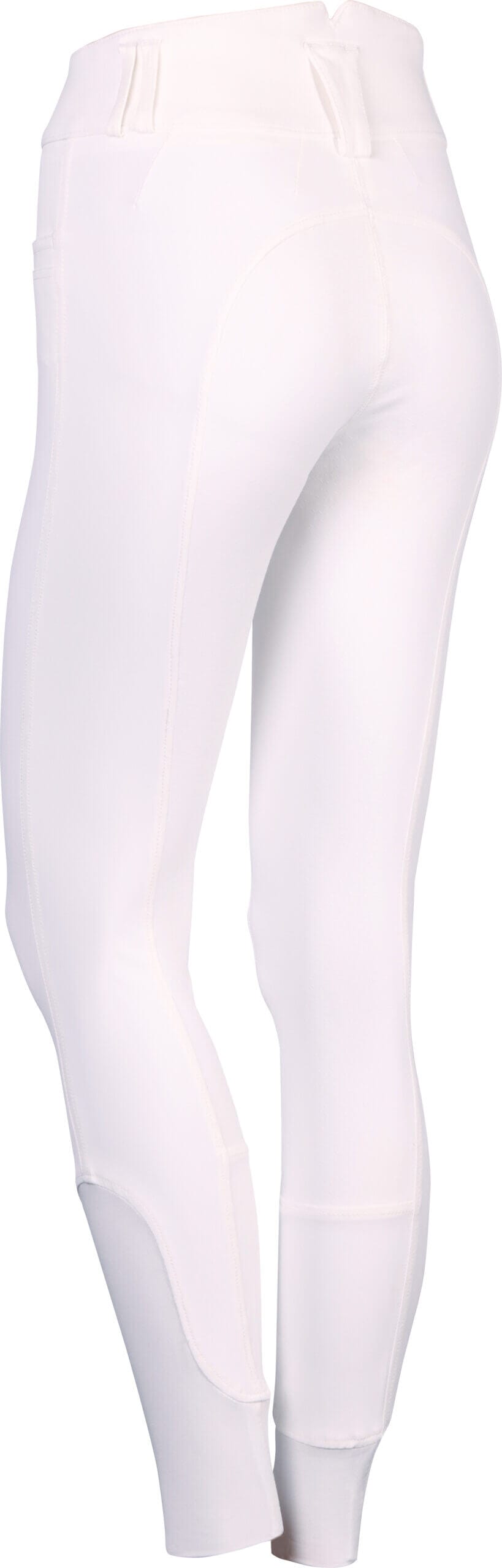 Rijbroek met een hoge tailleband met riemlussen, twee steekzakken, rondgenaaid zitvlak voorzien van een siliconen print voor extra grip in het zadel en een elastische inzet rond de enkels voor extra comfort in de rijlaarzen.