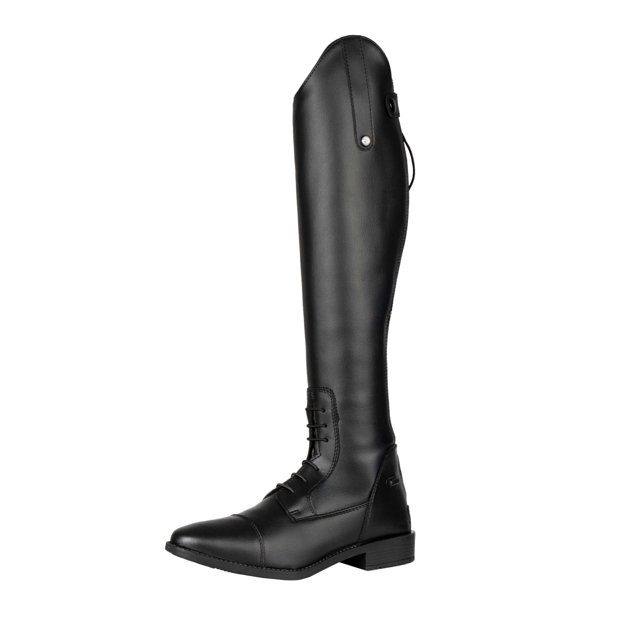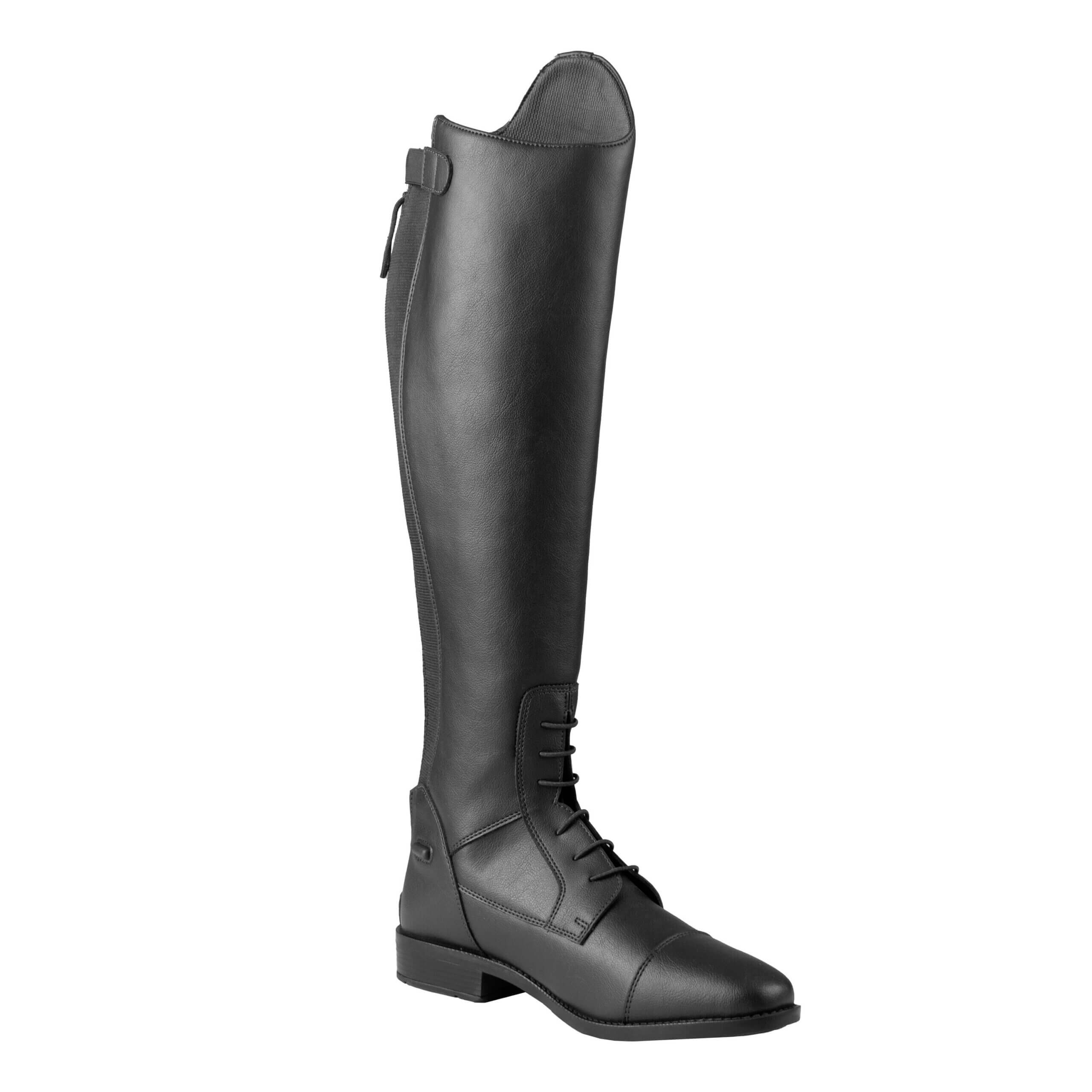 Stijlvolle rijlaarzen van imitatieleer. Door de verstelbare semi elastische veters en de rekbare kuit hebben de laarzen een fijne pasvorm. Productspecificaties: < Verstelbare semi elastische veters Rekbare kuit tot 15 cm Imitatieleer met subtiele korrel Cambrill ademende voering Materiaal:< Imitatieleren buitenkant Cambrill polyester voering