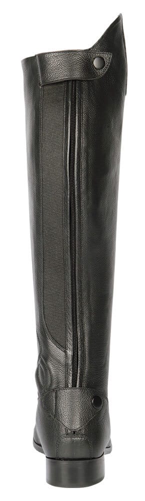 Volnerf lederen laars met dressuurboog, elastische veters en een lange rits aan de achterzijde. Geheel leder gevoerd voor een goede ventilatie. Aan de bovenkant van de rits zit een lederen beschermflap die eenvoudig te openen en sluiten is door middel van een drukknoop. Met een zachte versteviging op de enkel ter bevordering van het comfort. Voorzien van een chique, handgemaakte zool.