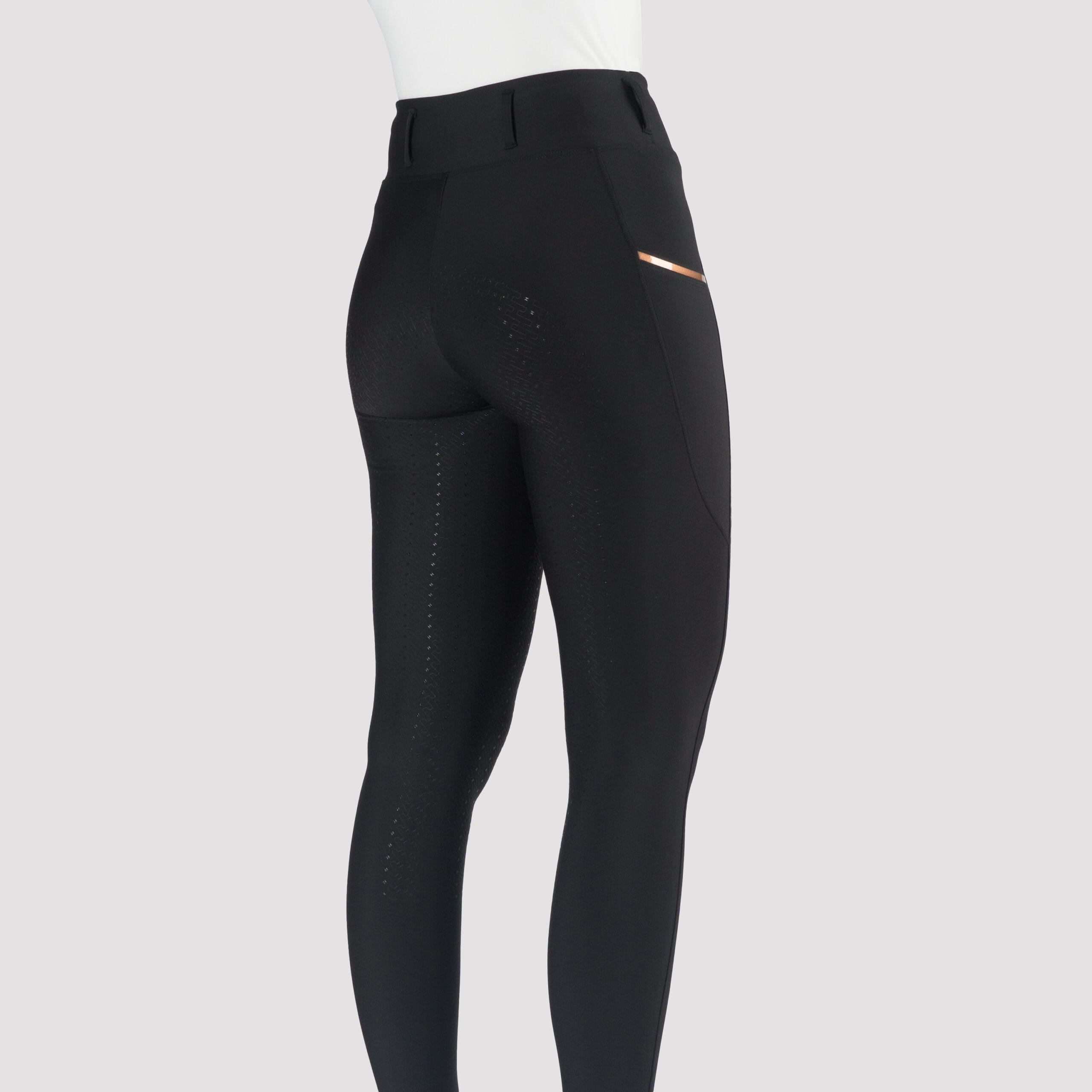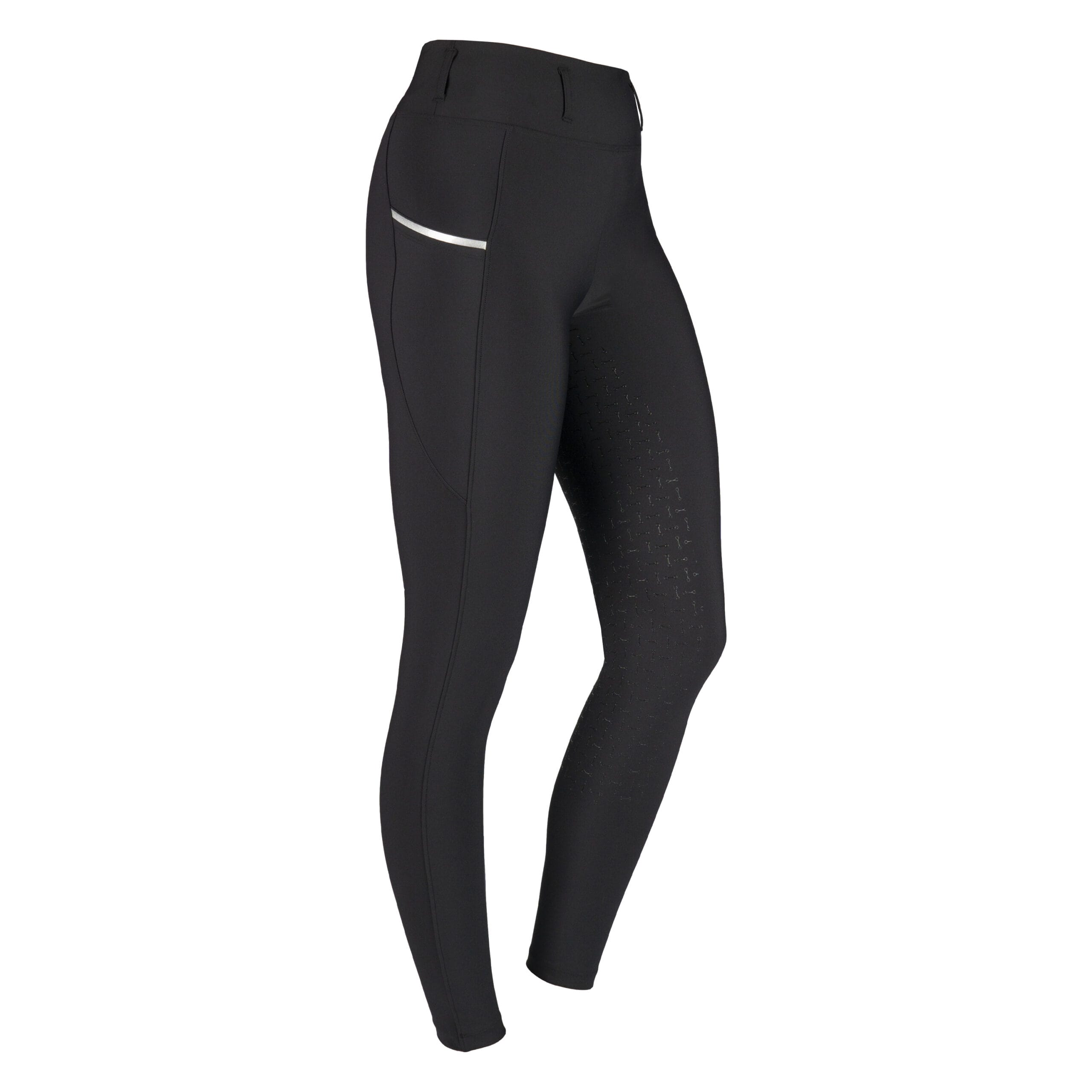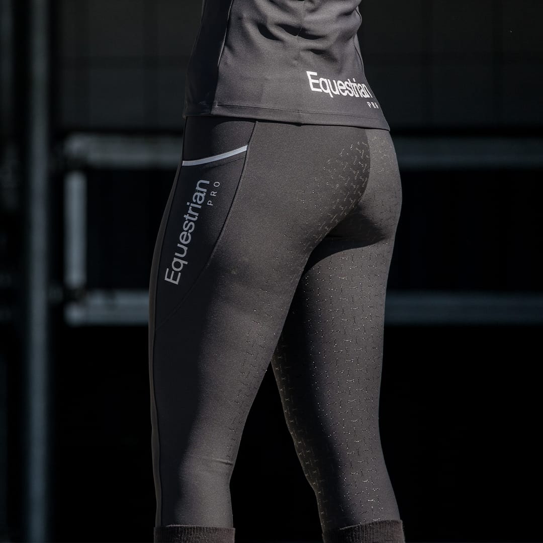 Mooi vormgegeven rijlegging uit :hoogwaardige comfortabele en ademende stretchstof. De legging heeft een flatterende pasvorm met een tailleband voorzien van riemlussen. De legging beschikt over een volledig siliconen zitvlak voor goede :grip in het zadel. Ook is de legging voorzien van twee zijzakken diep genoeg om je mobiele telefoon in op te bergen. Product Specificaties: Sneldrogend en ademend Tailleband met riemlussen Twee zijzakken diep genoeg voor een mobiele telefoon Volledig siliconen zitvlak Materiaal: 78% polyester 22% Spandex 280 gsm geweven :