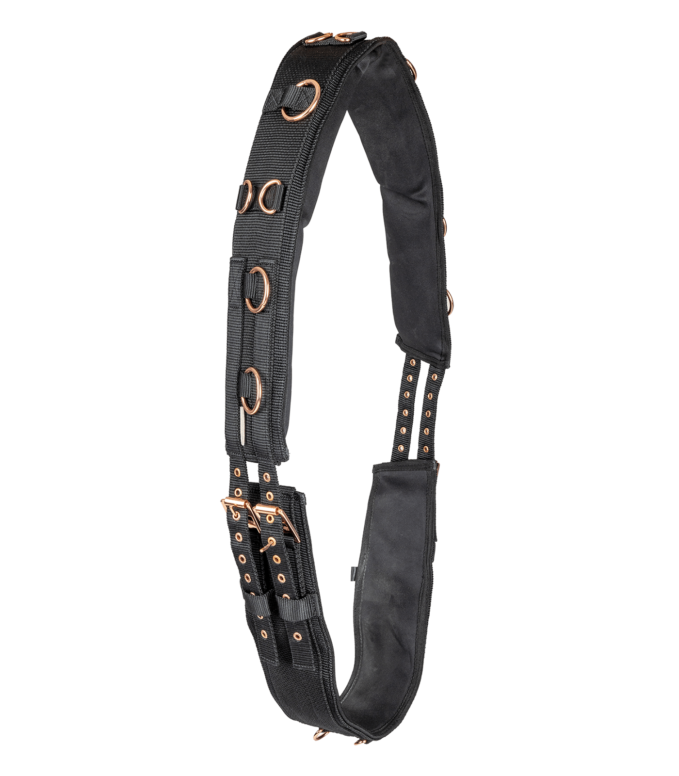 Dit artikel biedt comfort door de zachte voering en verstelbare singel met rolgespen. Met twaalf ringen kan het longeren individueel aangepast worden, terwijl de roségouden fittings zorgen voor een elegante uitstraling.
