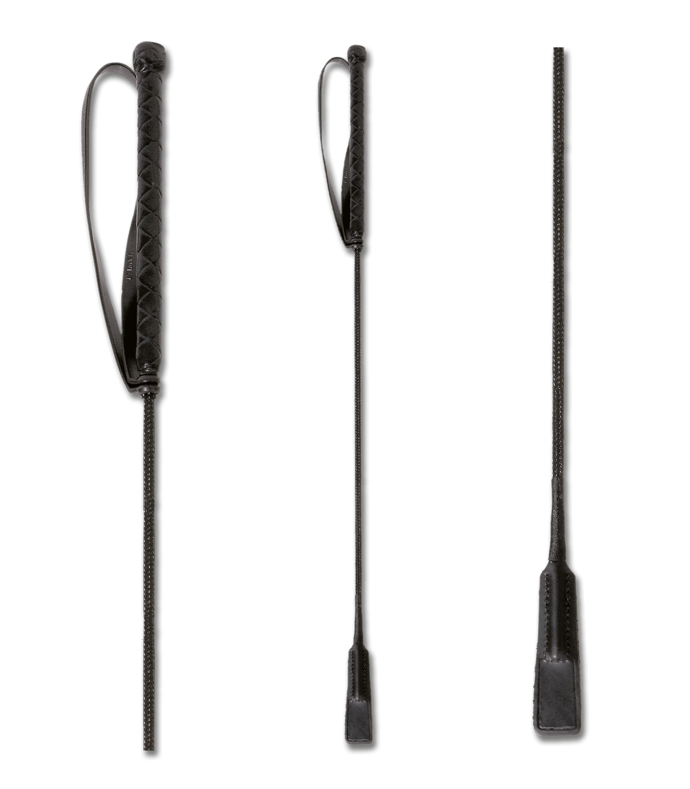 De springzweep met smal leren klapper biedt nauwkeurige ondersteuning bij het springrijden, verbetert de controle en communicatie met het paard en voorkomt verlies door de handlus.