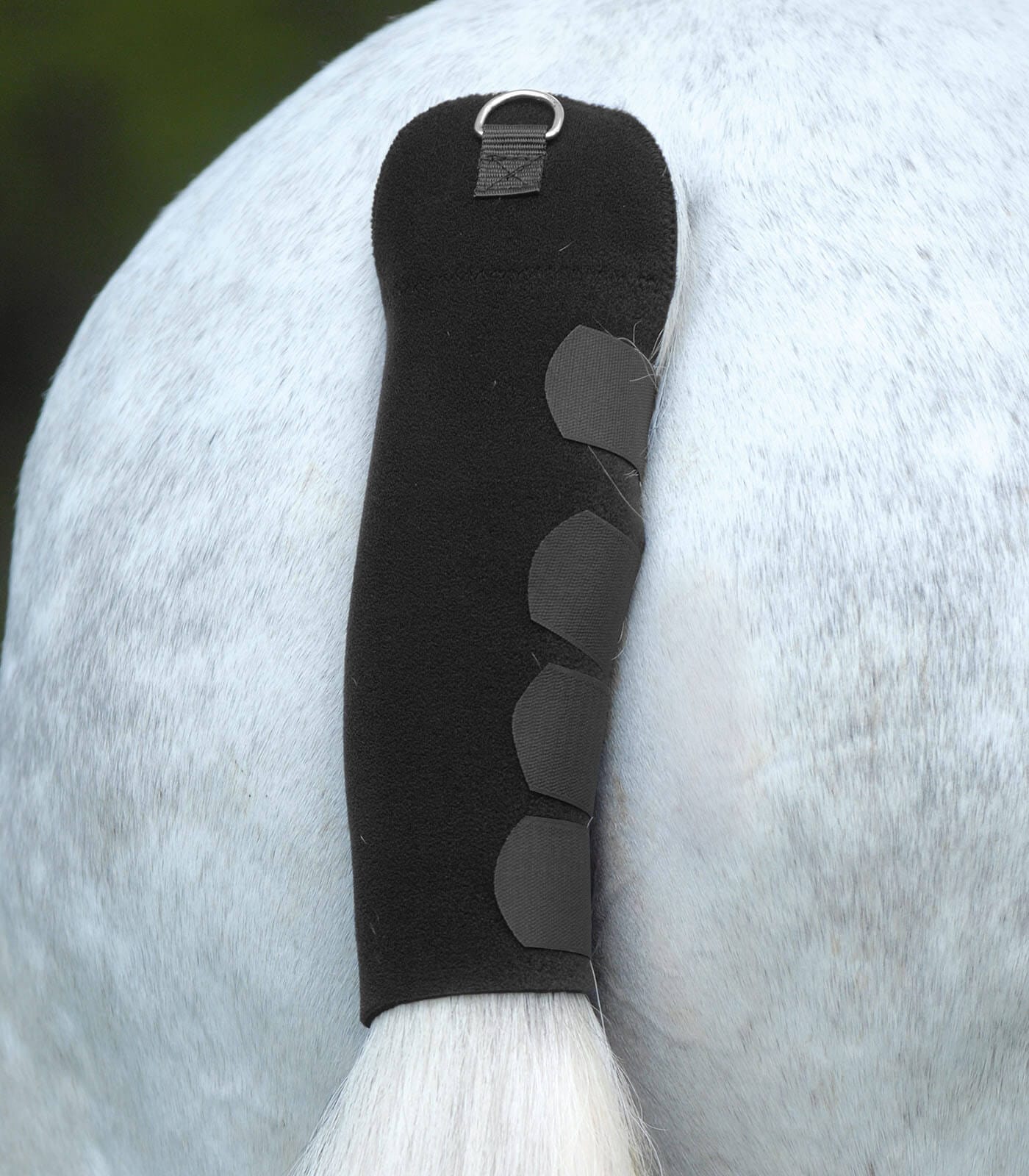 Beschermt de staartwortel van uw paard tijdens vervoer. Klittenbandsluitingen voor perfecte pasvorm. Voorzien van D-ringen voor bevestiging aan de deken.