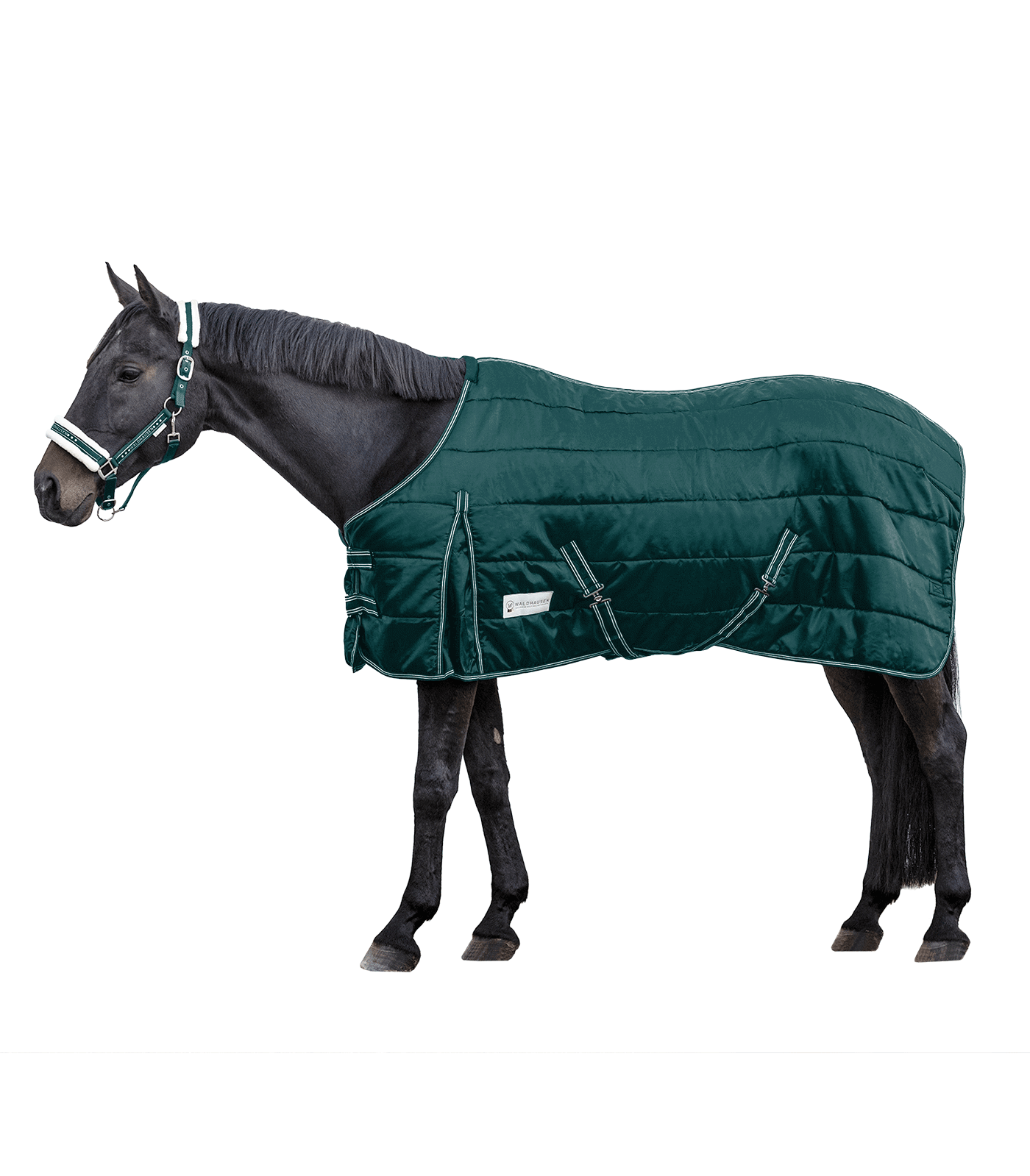 De staldeken is vervaardigd uit duurzaam materiaal met een thermische vulling van 200g voor koelere dagen. De anatomische snit bij de rugnaad zorgt voor een ideale pasvorm. Verkrijgbaar in dennengroen en nachtblauw, met stevige riemen en gespen.