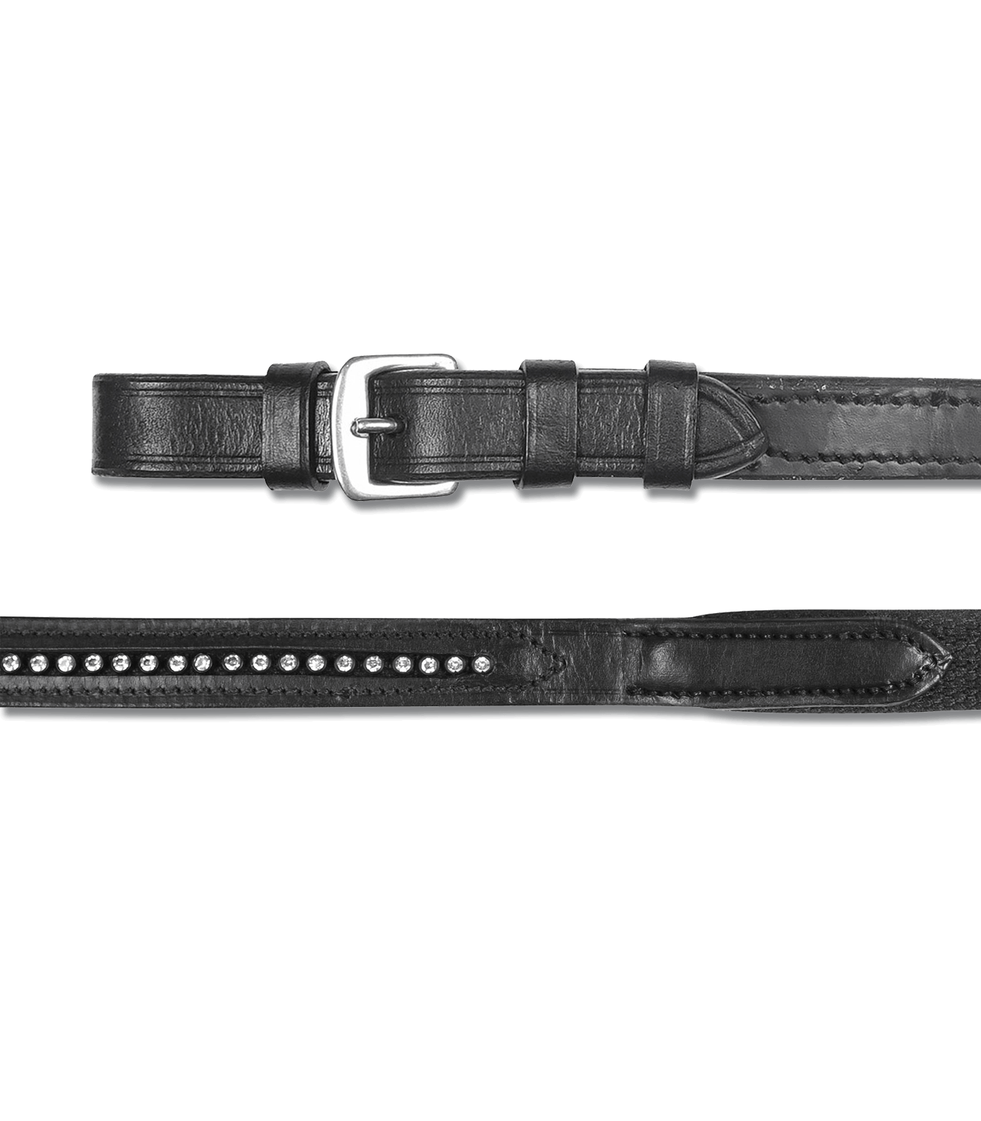 Star webteugels diamond combineren stijl en functionaliteit. Voorzien van een decoratieve strassketting en martingaleschuiver, bieden deze teugels uitstekende grip en een schitterende uitstraling tijdens het rijden. Perfect voor dressuur en show.