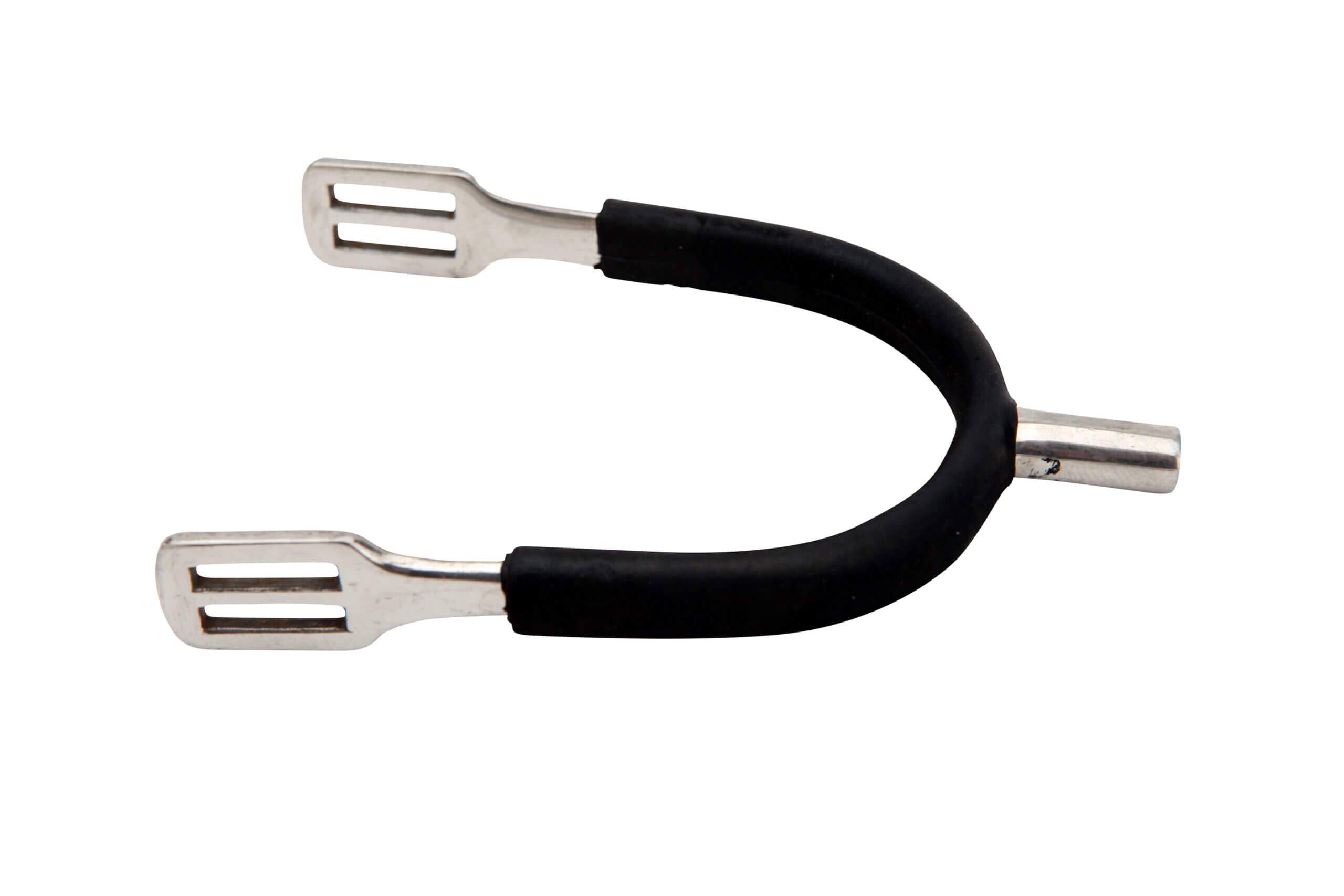 Stompe sporen omhuld met rubber om de laarzen te beschermen tegen beschadigen. Gemaakt van roestvrij staal.
