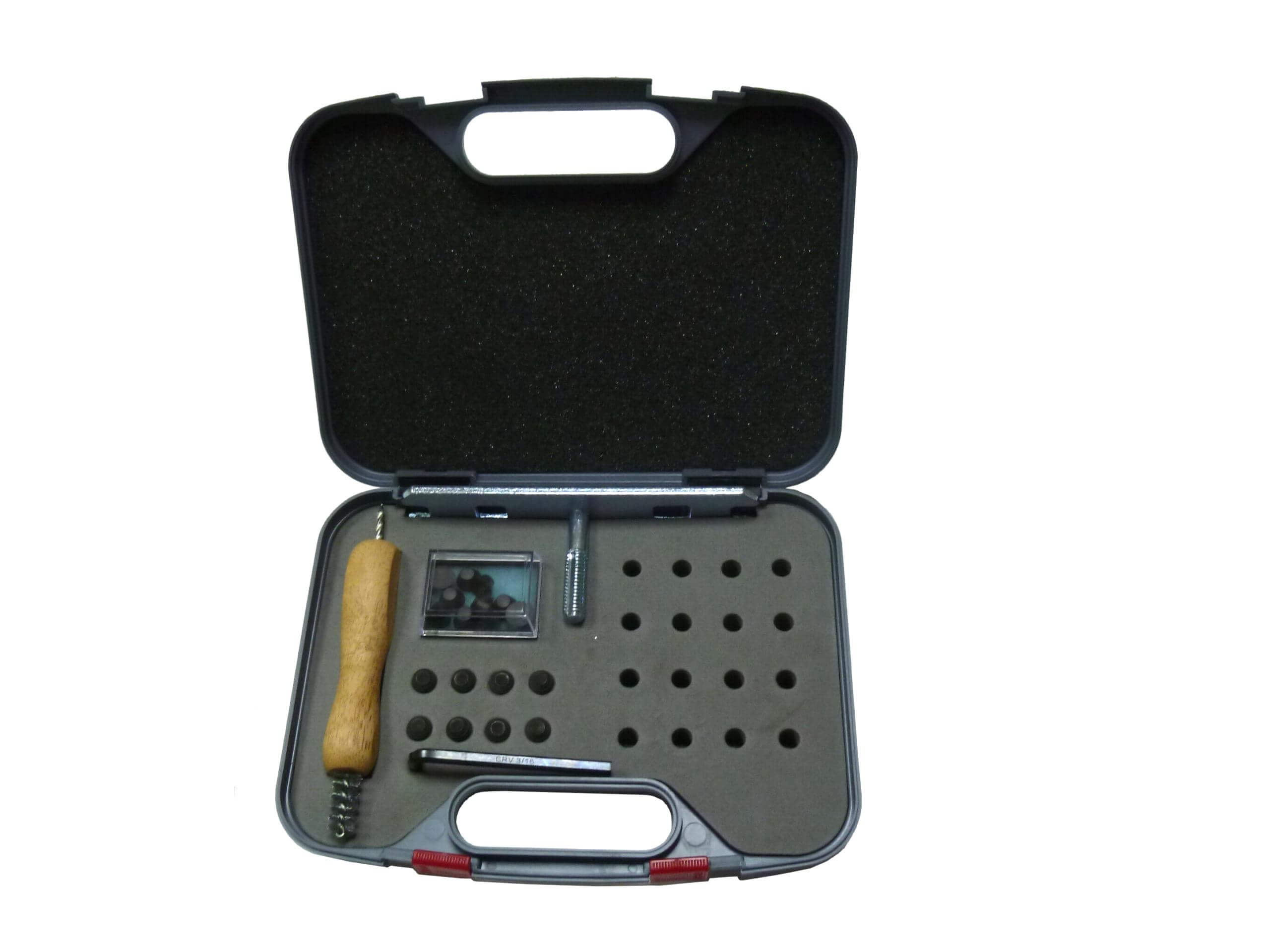 Kalkoenenset in koffertje. (Kalkoenen niet inbegrepen) Het koffertje bestaat uit: Kalkoentap en sleutel in 1 Kalkoengat reiniger met stalen borstel aan de ene kant en krabber aan de andere kant 10 rubberen dopjes 8 pluggen Inbussleutel Ruimte voor 2 sets kalkoenen (niet inbegrepen)