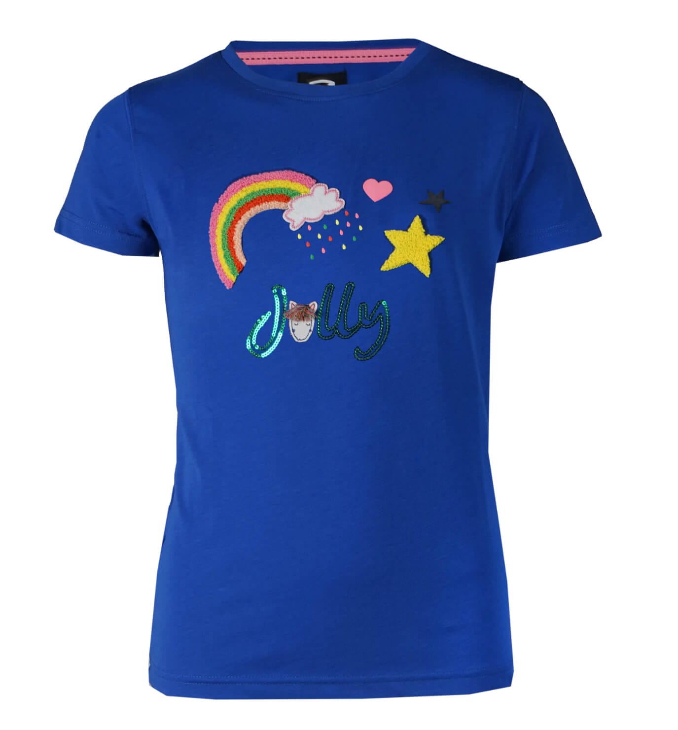 Dit schattige kinder t shirt is een goede combinatie van speelse kleuren en schattig Jolly Unicorn artwork op de voorkant. Inclusief fluffy manen en staart! Productspecificaties: T shirt voor kleine kinderen met contrasterende stiksels Jolly unicorn afbeelding aan de voorkant Materiaal: 95% Katoen 5% Elastaan 160 gsm