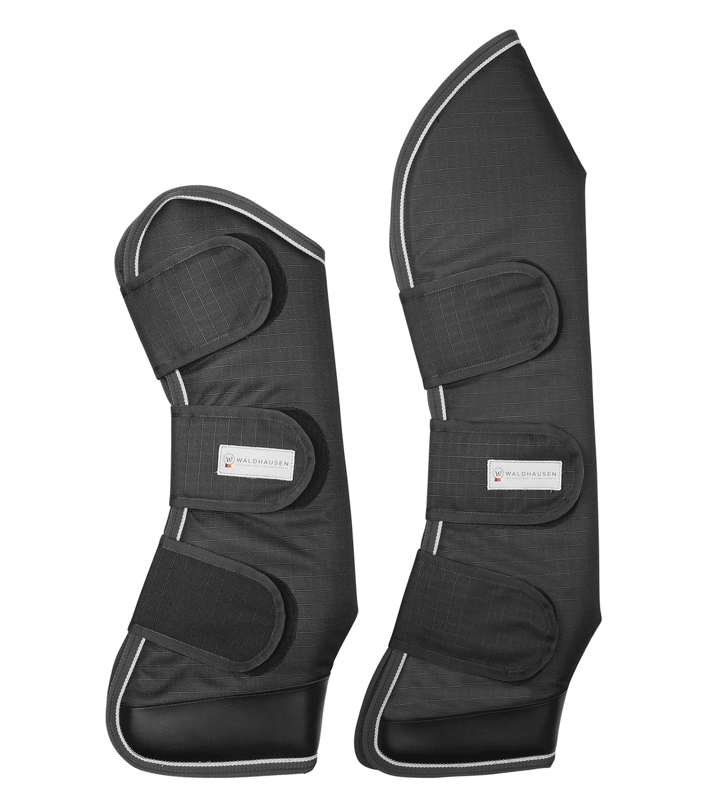 De transportbeschermers zijn uitgerust met stevige klittenband sluitingen en een slijtvast buitenmateriaal, versterkt bij de hak. Binnenin zorgt een schokabsorberende schuimvulling (1,5 cm dik) en zachte fleece voering voor comfort. Beschikbaar in zwart, grijs, nachtblauw.