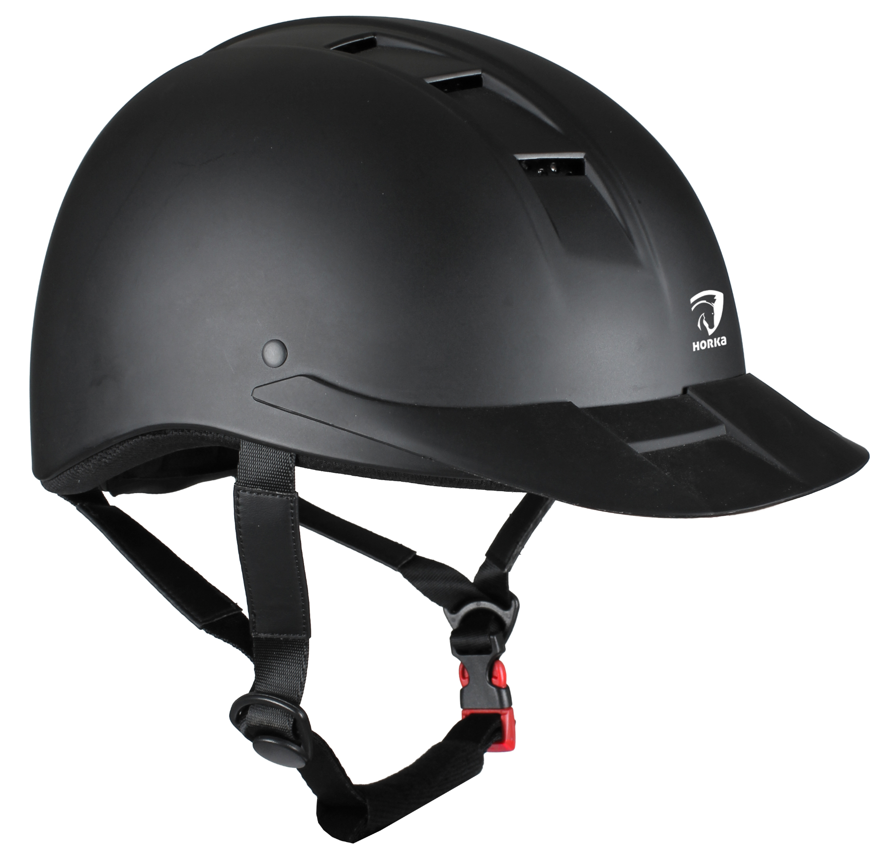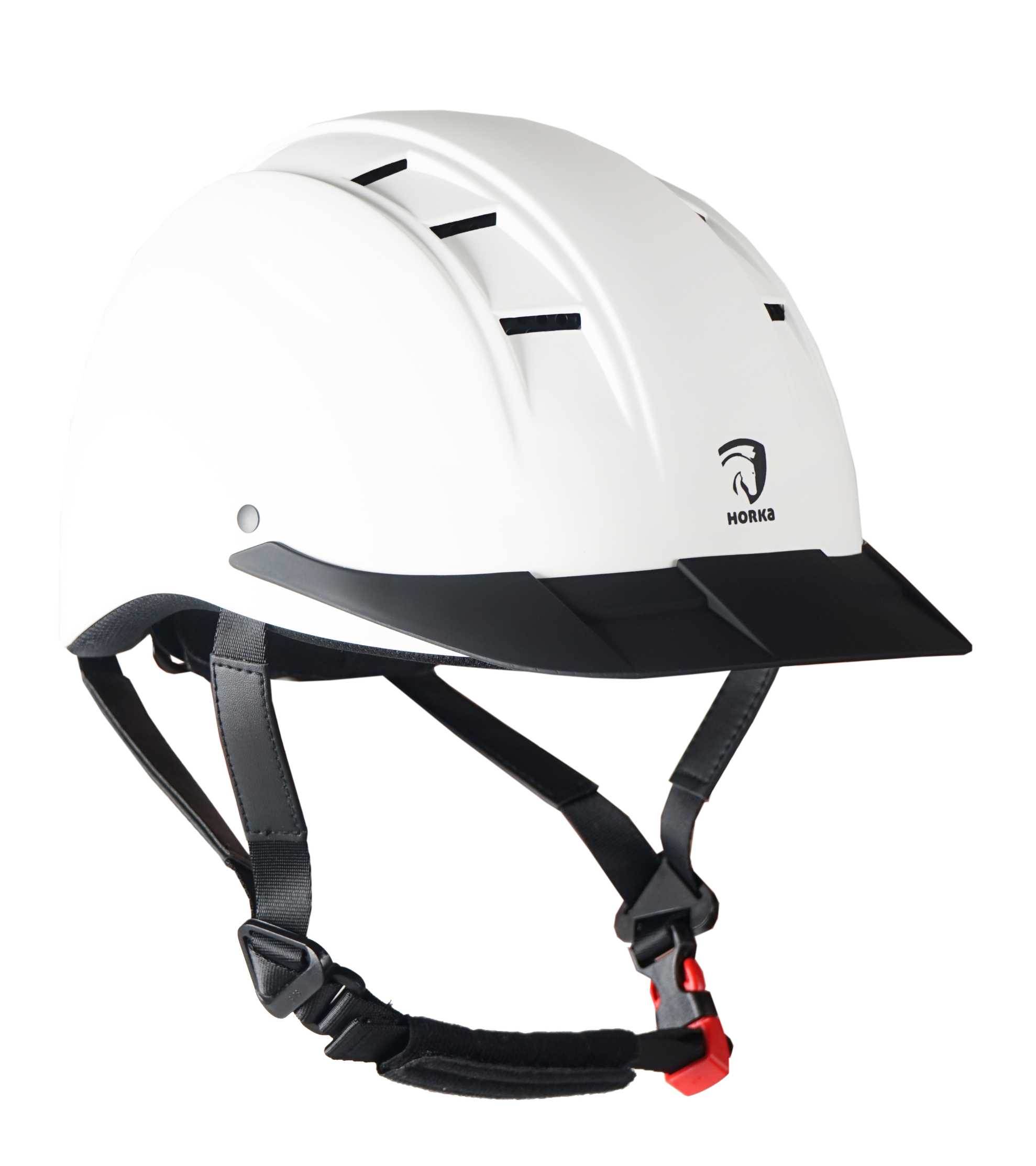 Lichtgewicht veiligheidshelm. De helm is EN1384:2023 gecertificeerd. Productspecificaties: Goed geventileerd :4 punts veiligheidsgordel met imitatie leder look Verstelbaar maatsysteem d.m.v. draaiknop Uitneembare en wasbare binnen voering De klep van de helm is afneembaar (los te halen van de cap) Maten: : S/M = 49 53 cm M/L = 54 58 cm L/XL = 59 61 cm