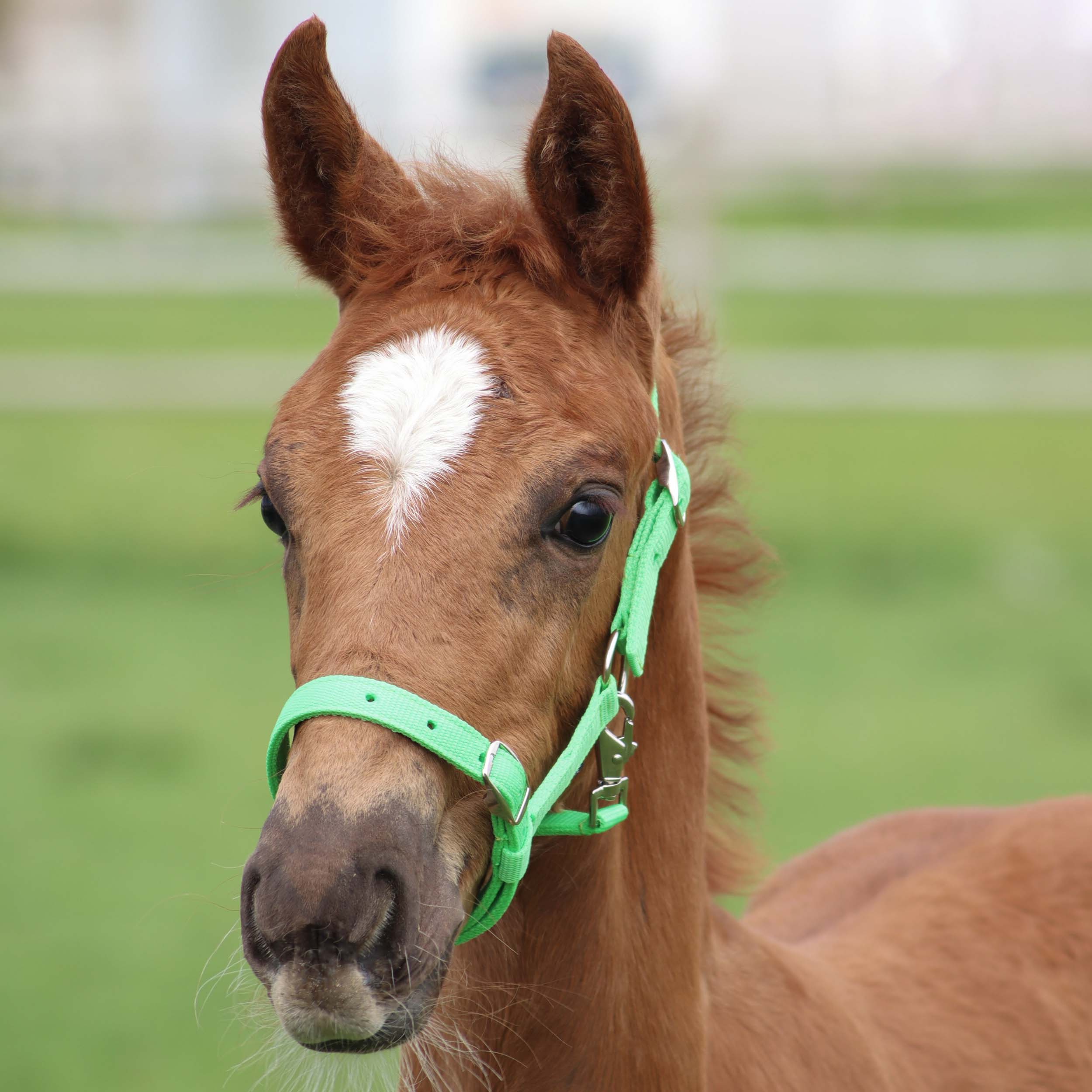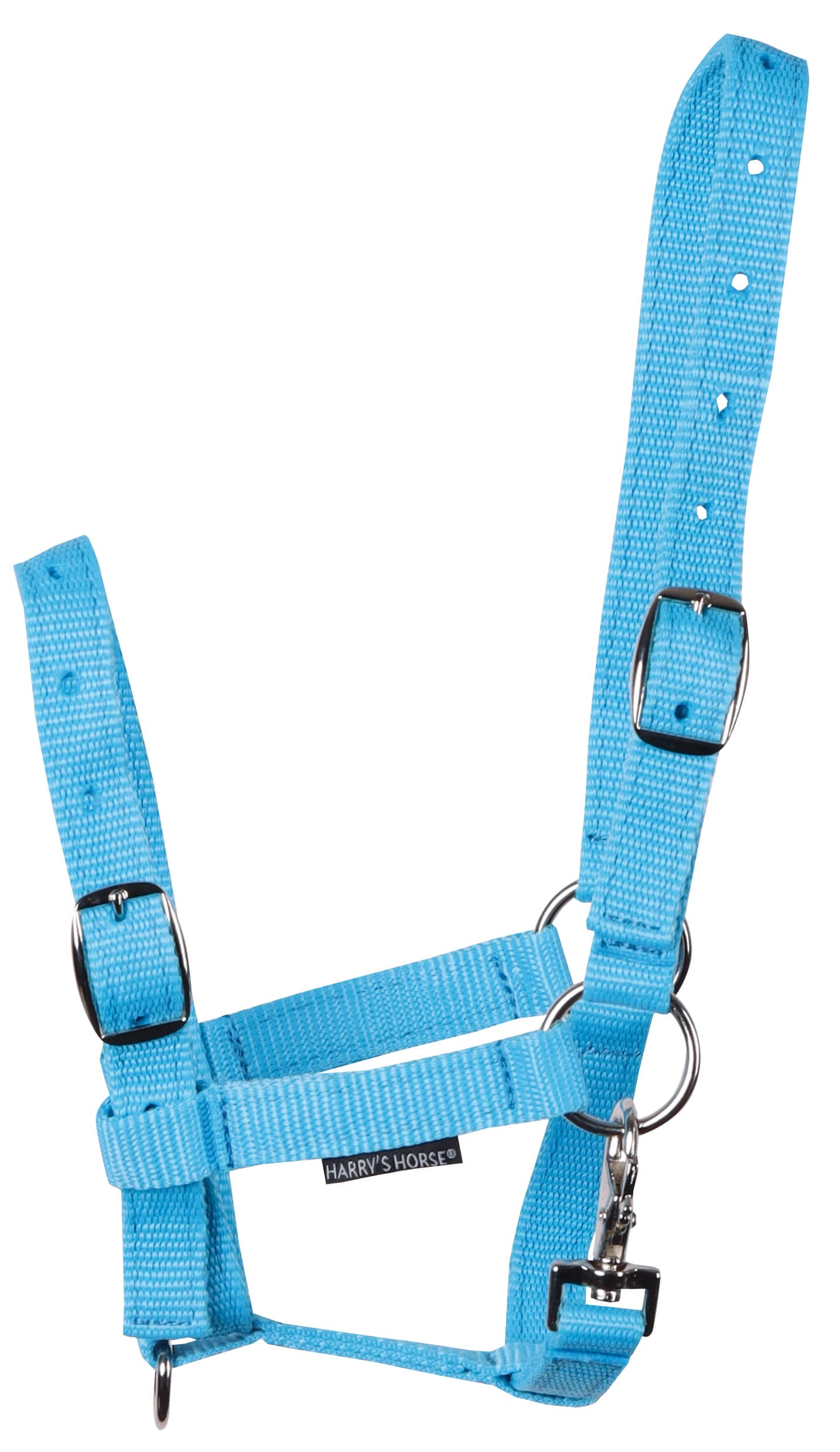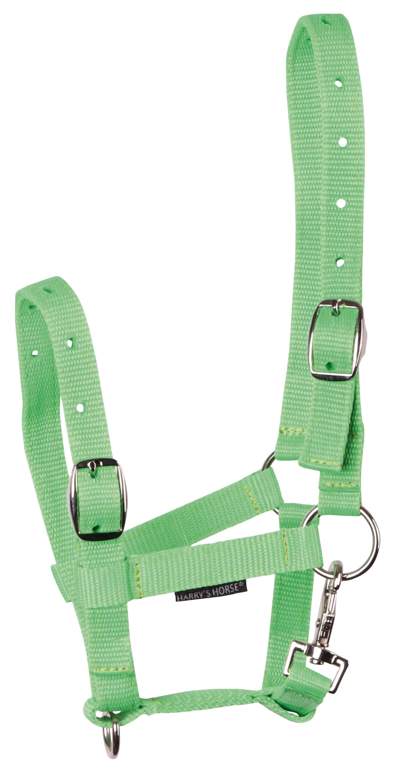 Veulenhalster met verstelbaar neus- en kopstuk. Eenvoudig om en af te doen door middel van een snelsluiting aan de keelriem. zilverkleurige fournituren van nikkel.