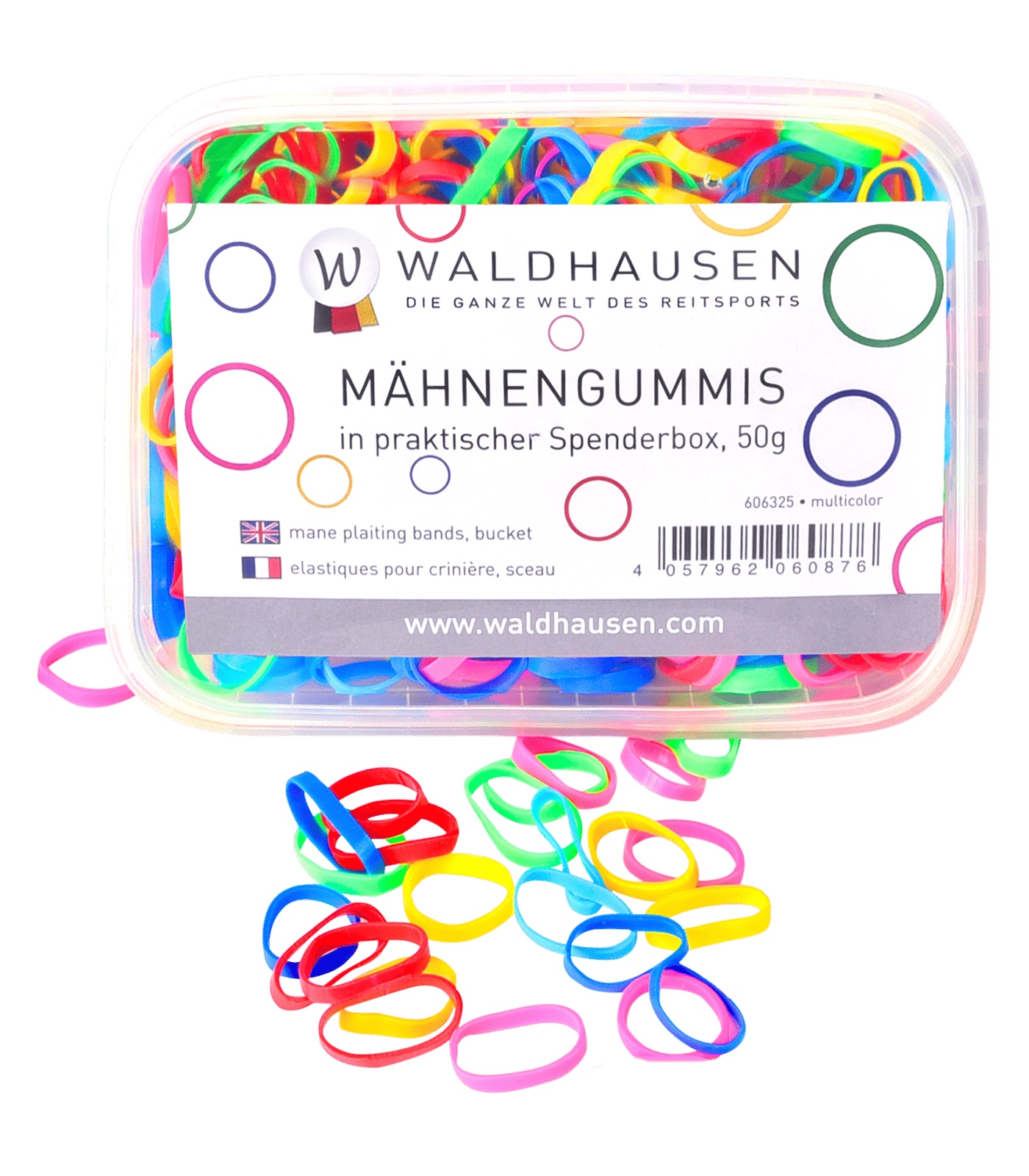 De extra brede, kleurrijke vlechtbandjes zorgen voor een opvallende, comfortabele en veilige afwerking van de manen tijdens wedstrijden. Gemakkelijk mee te nemen en te gebruiken dankzij de handige dispenser. Ideaal voor reizen en competities.