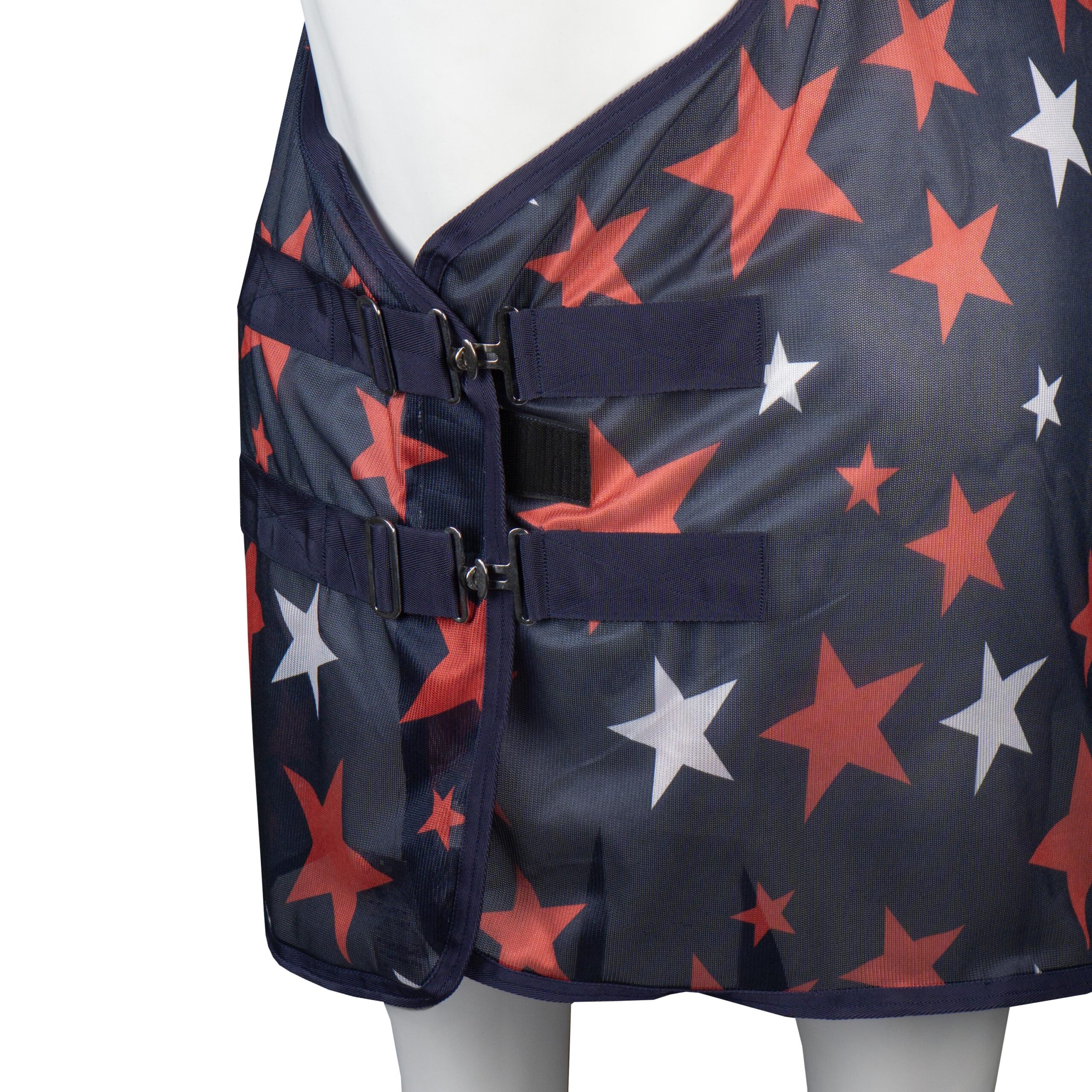Vliegendeken met print gemaakt van mesh materiaal. Productspecificaties: Dubbele verstelbare snel sluiting op de borst Fleece gevoerde schoft Kruissingels met rubber stops : Afneembare en verstelbare bilkoorden Materiaal: : 100% polyester mesh 150 gsm