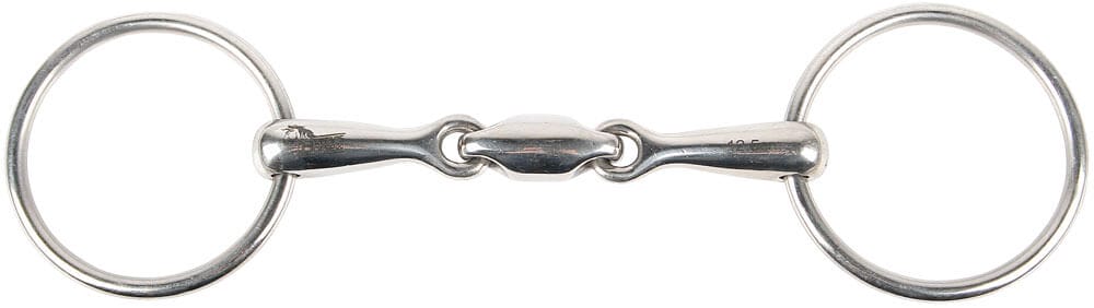 Vervaardigd van hoogwaardig RVS dun mondstuk,met ovaal tussenstuk Dikte: 16MM ring: 65mm Wordt makkelijk aangenomen door het paard.