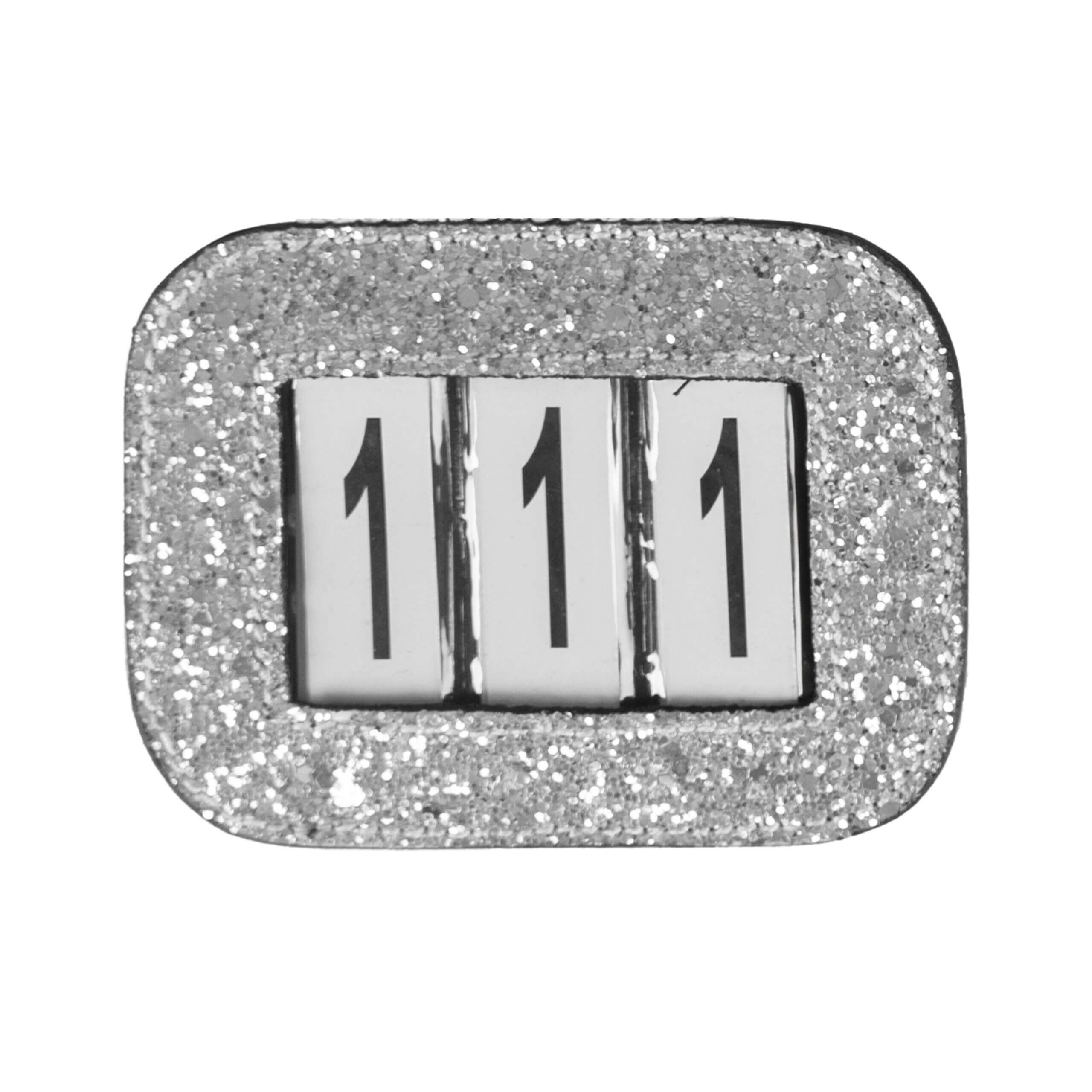 Stijlvolle nummerhouder met glitters welke gemakkelijk bevestigd kan worden aan het zadeldek of hoofdstel. Wordt geleverd met verwisselbare nummers. Afmeting: Lengte: 12 cm Breedte: 9.5 cm Materiaal: Leer