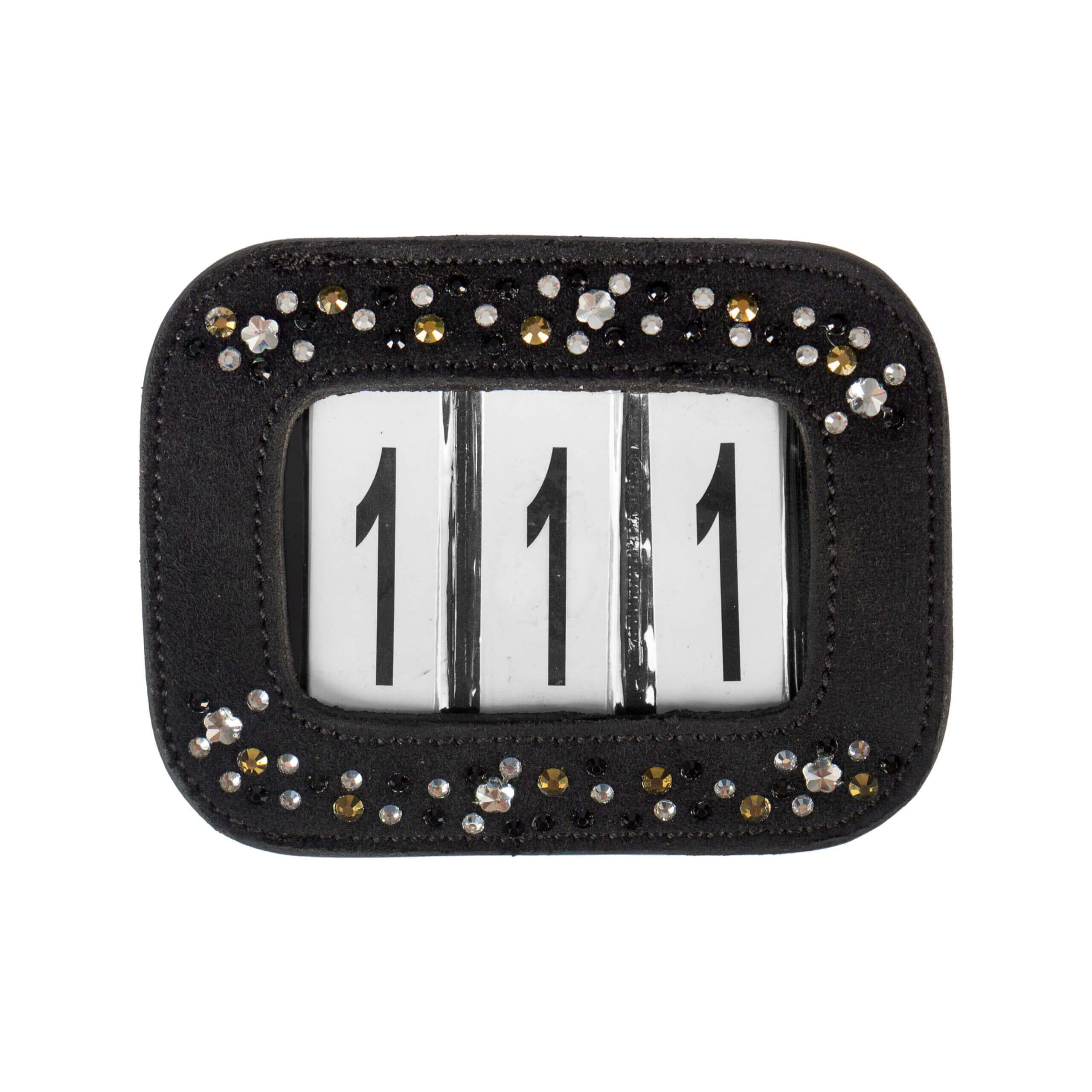 Stijlvolle nummerhouder voor wedstrijden welke gemakkelijk bevestigd kan worden aan het zadeldek of hoofdstel. Wordt geleverd met verwisselbare nummers. Afmeting: Lengte: 12 cm Breedte: 9.5 cm Materiaal: Leer