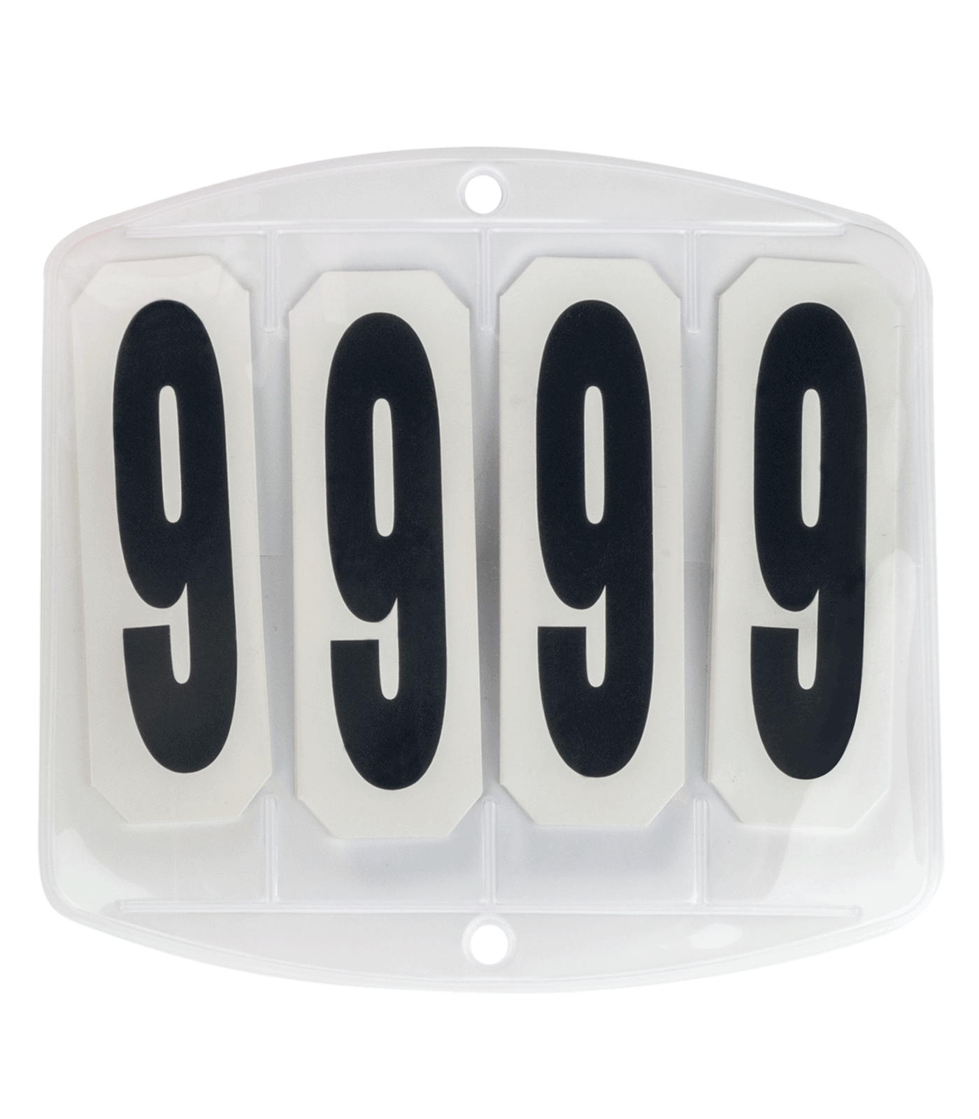 Ideaal voor hoofdgevoelige paarden. Deze wedstrijdnummers voor het zadeldek, bevestigd met klittenband, verstoren het paard niet. Wasbaar en verstelbaar, nummers 0001 t/m 9999. Verkocht per paar.